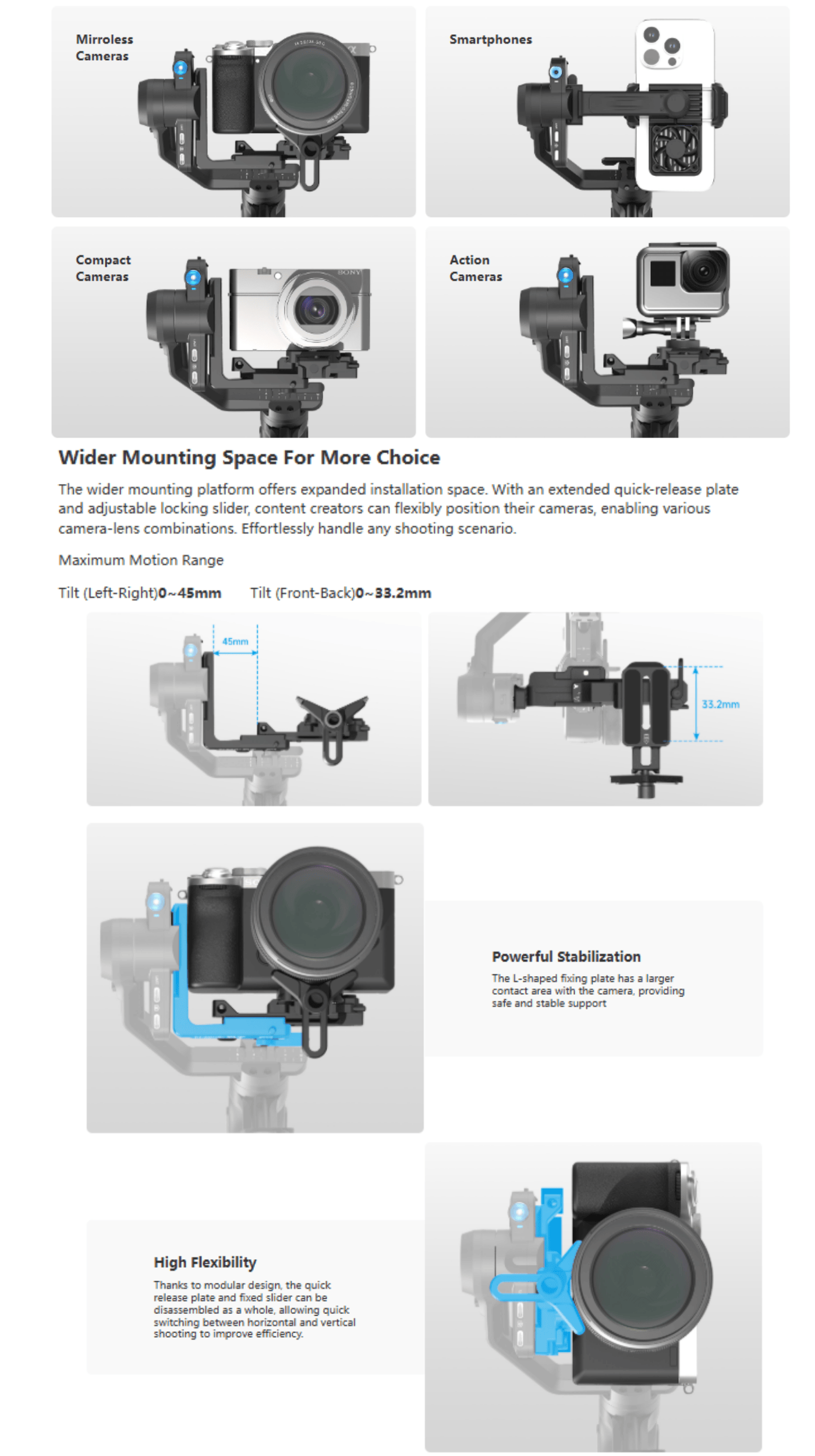 - Upgraded Quick Release, Tilt, and Roll
