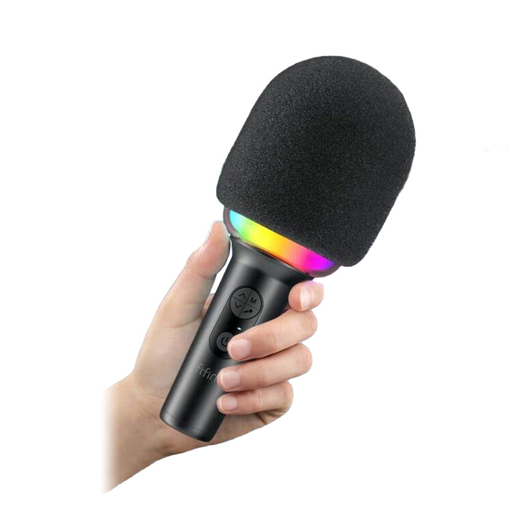Fifine AmpliSing E2 Wireless Karaoke Microphone with Built-In Speaker, Voice Changer Presets and 5hr Rechargeable Battery for Live Performance (Black)