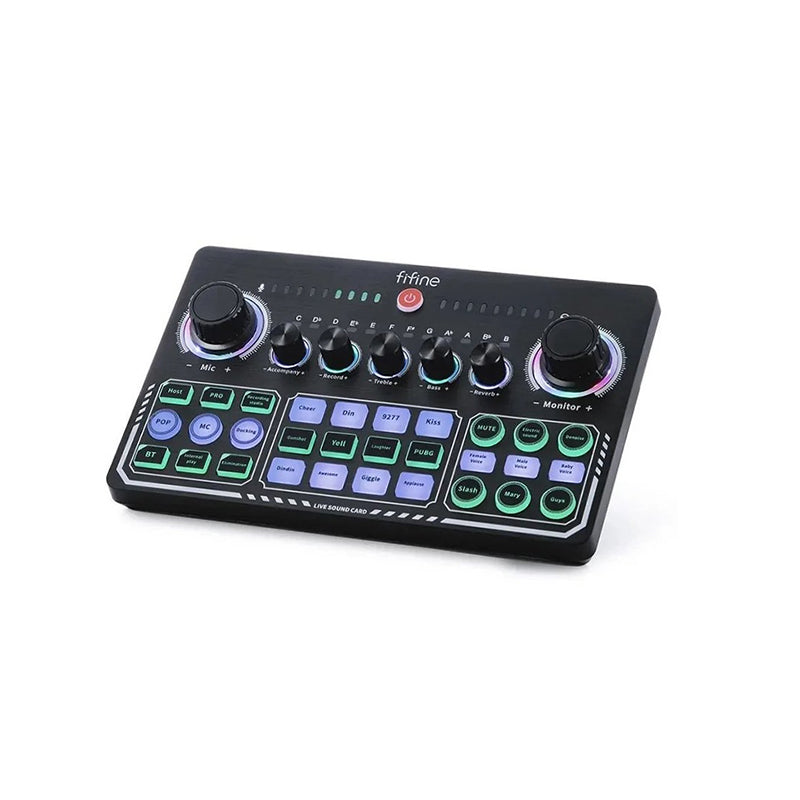The Fifine SC6 Wireless Sound Mixer is the perfect choice for professionals looking for a versatile mixing desk for streaming and podcasting. Switch between 12 electronic scales, making your sound sound crisp and clear. It also has various voice switching effects, allowing you to switch between male voices, female voices, child voices, MCs and more whenever you want. In addition, the 15 fun atmospheric sound effects give you more control over your live broadcast to create a more dynamic atmosphere.