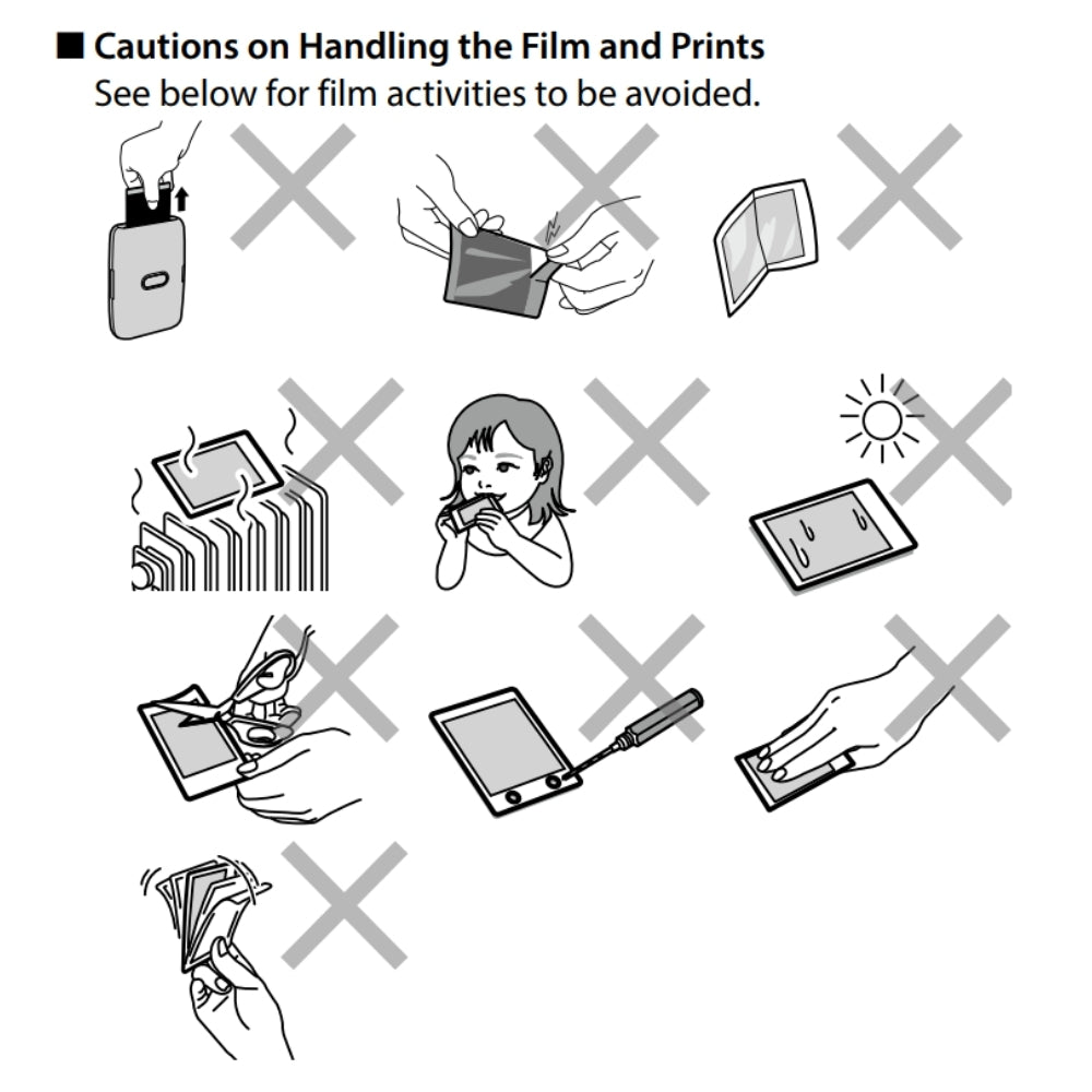 Caution to avoid the damage for instant films, as well to camera/printers used.