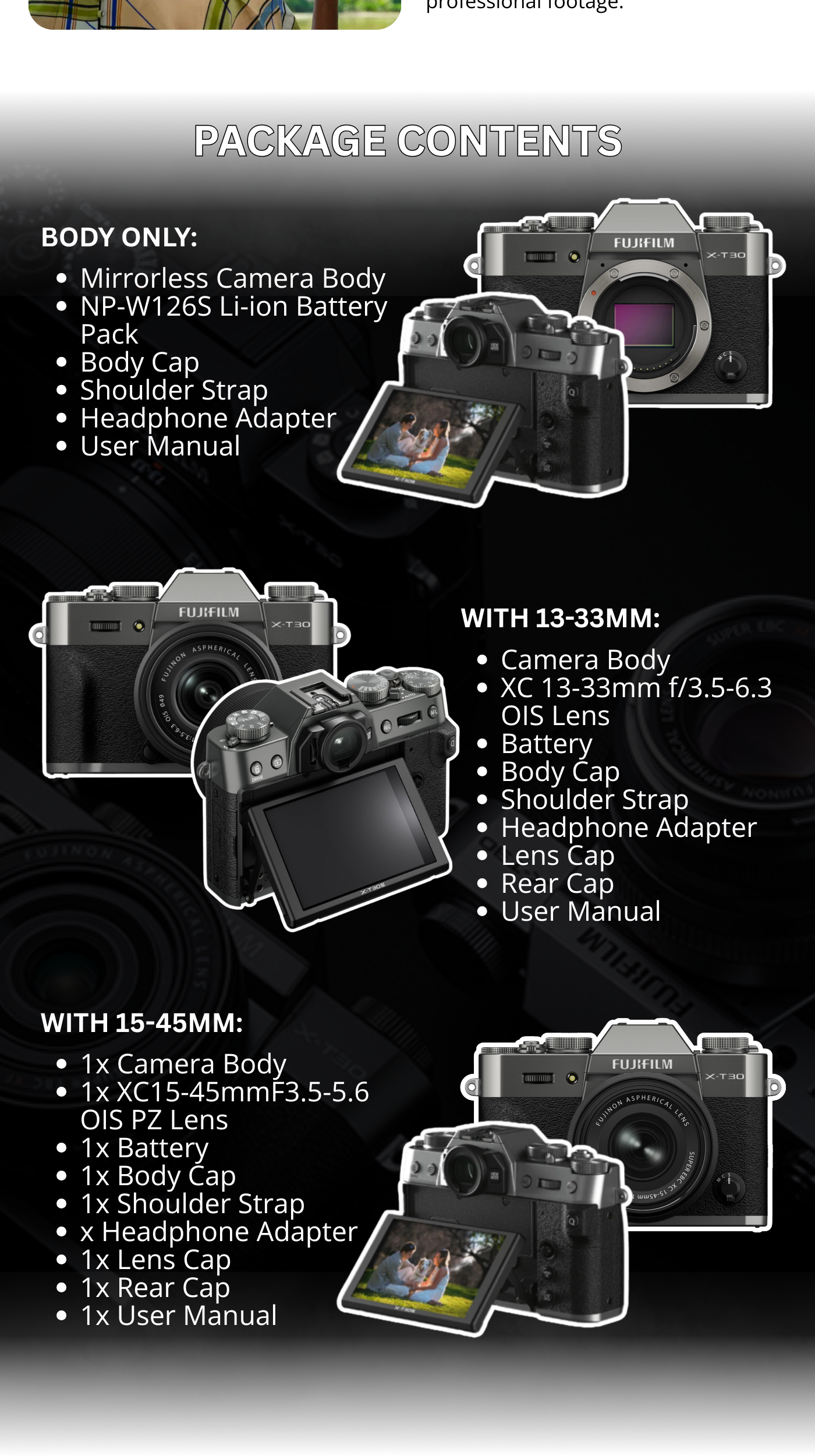 The FUJIFILM X-T30 III is the latest compact, retro-styled mirrorless camera body from Fujifilm, now featuring a powerful 26.1MP APS-C sensor and an advanced image processor. It’s small, lightweight, and designed for creatives who want premium image quality and 6.2K video without bulk. With tactile dials, a customizable Film Simulation dial, and AI-enhanced autofocus, it’s ideal for photography enthusiasts, content creators, and travelers alike. Whether you shoot street, portraits, landscapes or video, the X-T30 III gives you flexibility, quality, and the timeless Fuji aesthetic.