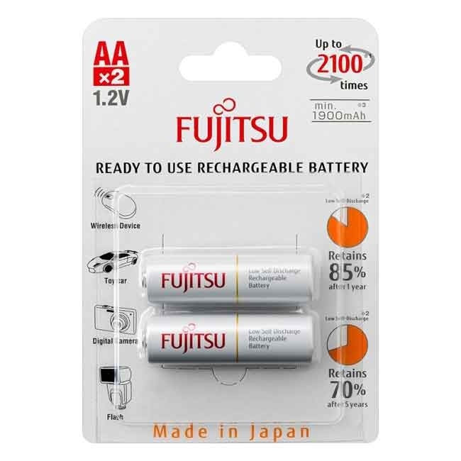 Fujitsu 1.2V 1900mAh Ready-to-use NiMH Low Self-Discharge Rechargeable AA Batteries Pack of 2 | HR-3UTC-2B