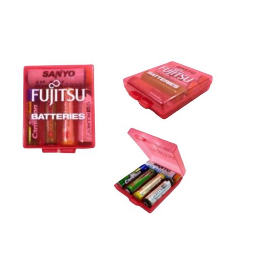 Fujitsu 4 Slot AA and AAA Battery Case for Travel and Storage (Pink)