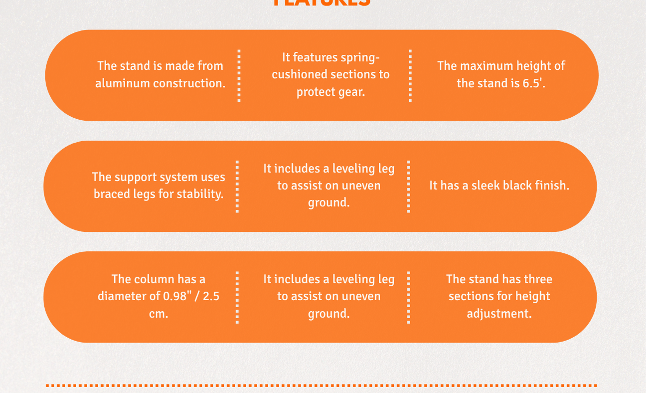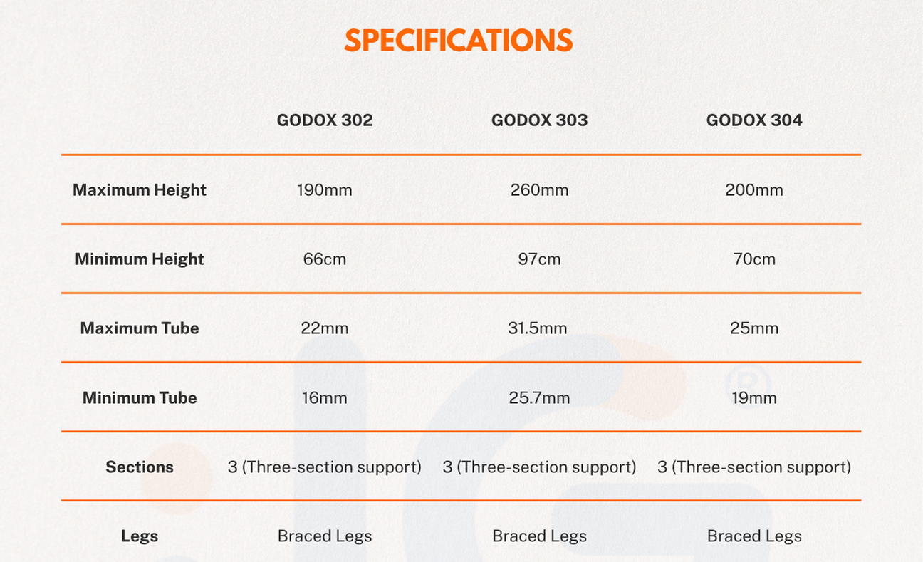 The aluminum model 304 Light Stand from Godox is a three-section support with braced legs that rises to a maximum height of 6.5', and offers a minimum height of 27.5". The spring-cushioned sections gently lower your gear to avoid impact damage when making height adjustments.