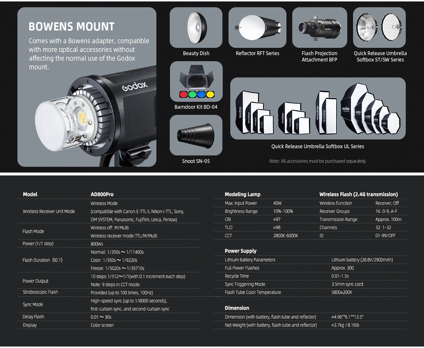 GODOX AD800Pro 800Ws All in One Outdoor Flash with HSS 1/8000s 40W LED