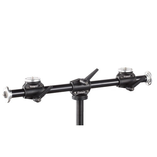 A versatile addition to your setup whether you're shooting in the studio or in the field, the Dual Mount Arm from Godox features two side mounts and two top mounts. This bar mounts to your tripod and transforms it into a platform for attaching different accessories. One of the top mounts features a 1/4"-20 mount and the other provides a 3/8"-16 mount. Likewise, one of the side mounts features a 1/4"-20 mount and the other provides a 3/8"-16 mount. The tube slides back-and-forth to reposition the attached accessories and locks down with a ratchet lever. Additionally, the two top mounts lock down with their respective ratchet levers. With the two top mounts, you have the option of mounting a platform for your laptop computer, a tripod head, a microphone, an LED video light, and other photo and video accessories.