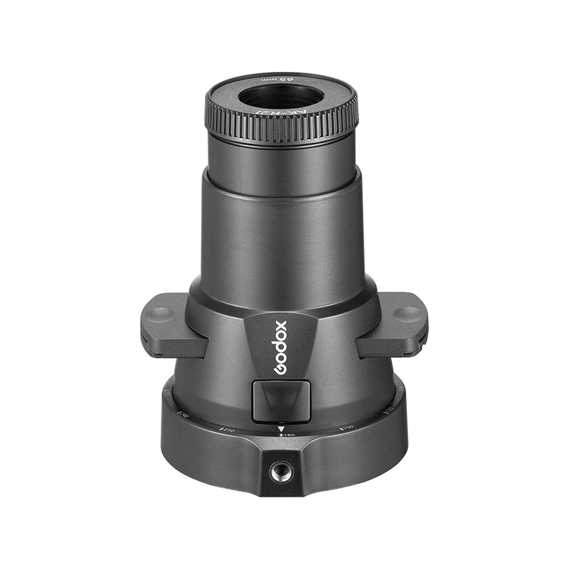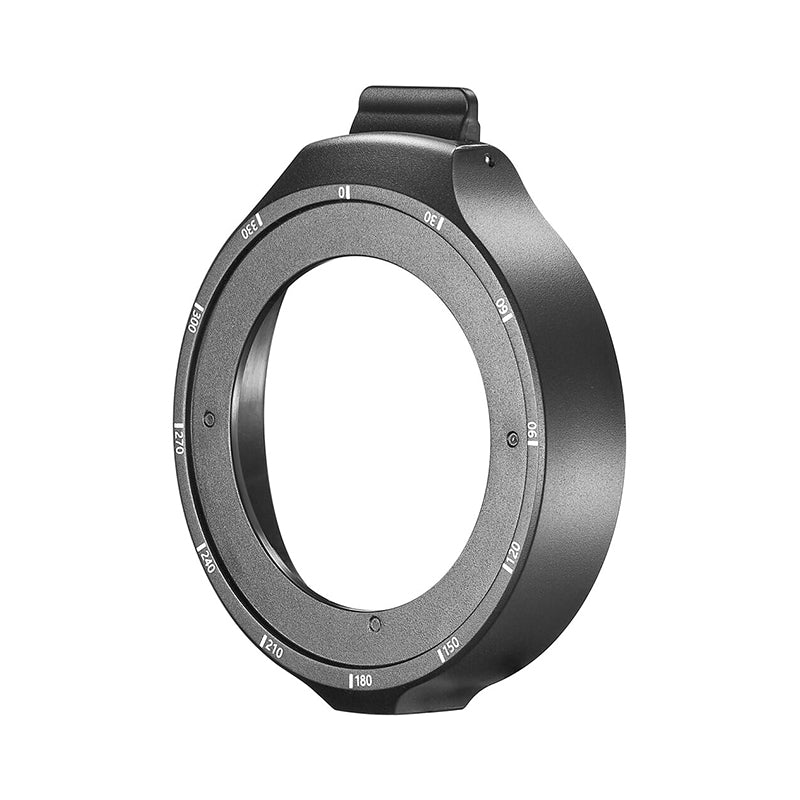 The projector is 360° rotatable when attached to flashes. So you can adjust the projection angle to the proper angle much more conveniently and efficiently. The mounting ring is also considerately marked with degree numbers, which gives you a visible and measurable guide to adjust the projection precisely.