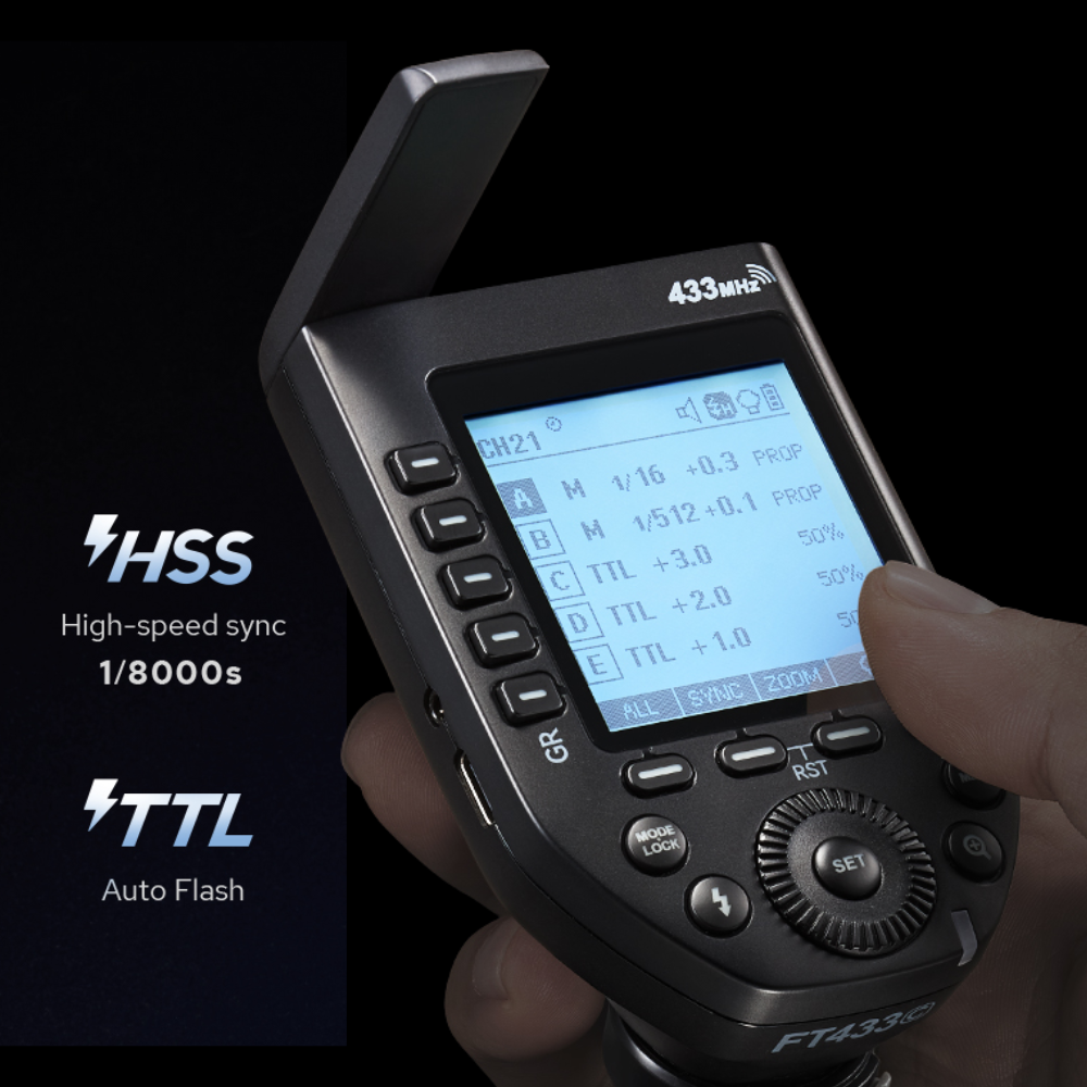 ● Achieve ultimate precision with the FT433 Trigger, offering comprehensive support for TTL auto flash, Manual, and Multi-flash modes.
