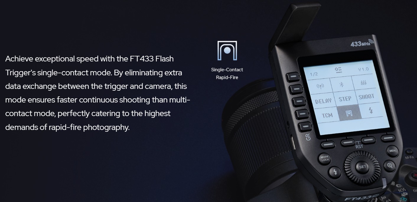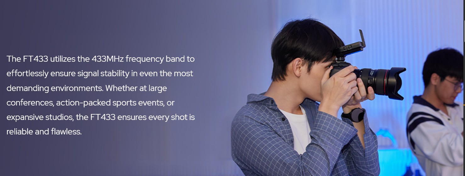 ● To meet higher signal demands for control systems, Godox proudly introduces the FT433 Flash Trigger to elevate your operational efficiency and precision.