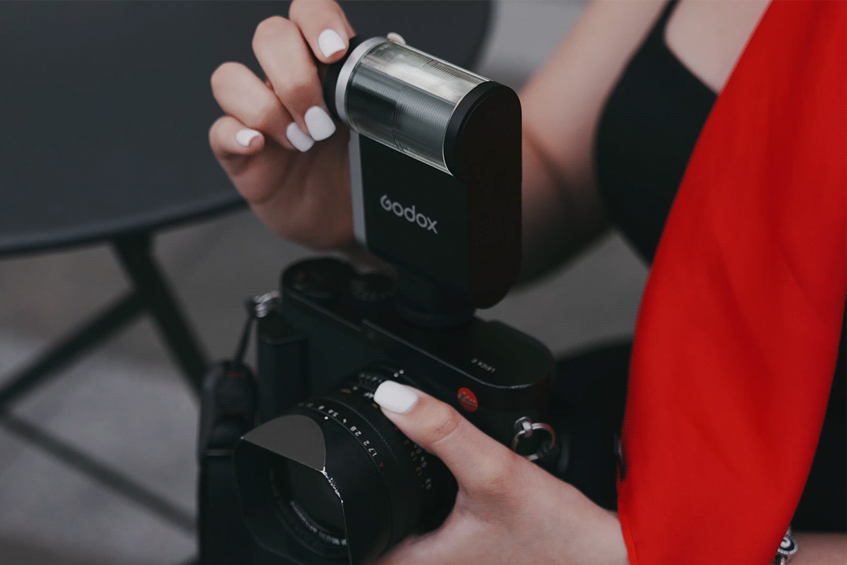 ● The flash head assembly allows easy angle adjustments from -7° to 90°, controlled via the side dial. This design also enables bounce flash effects for more varied lighting options.