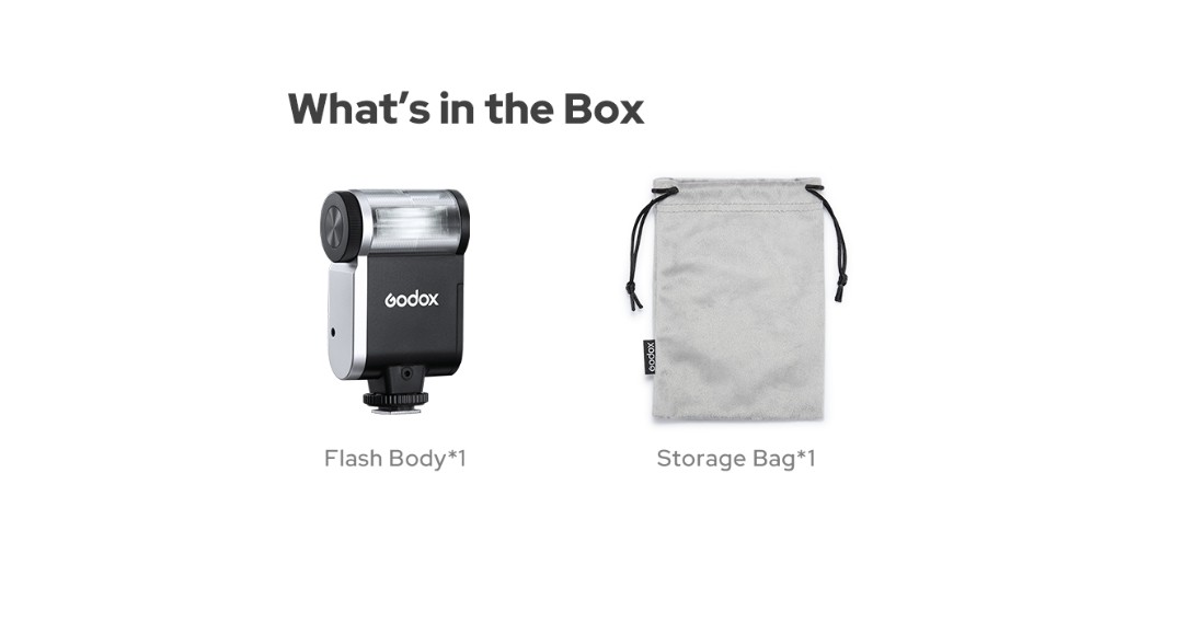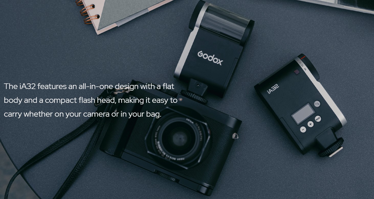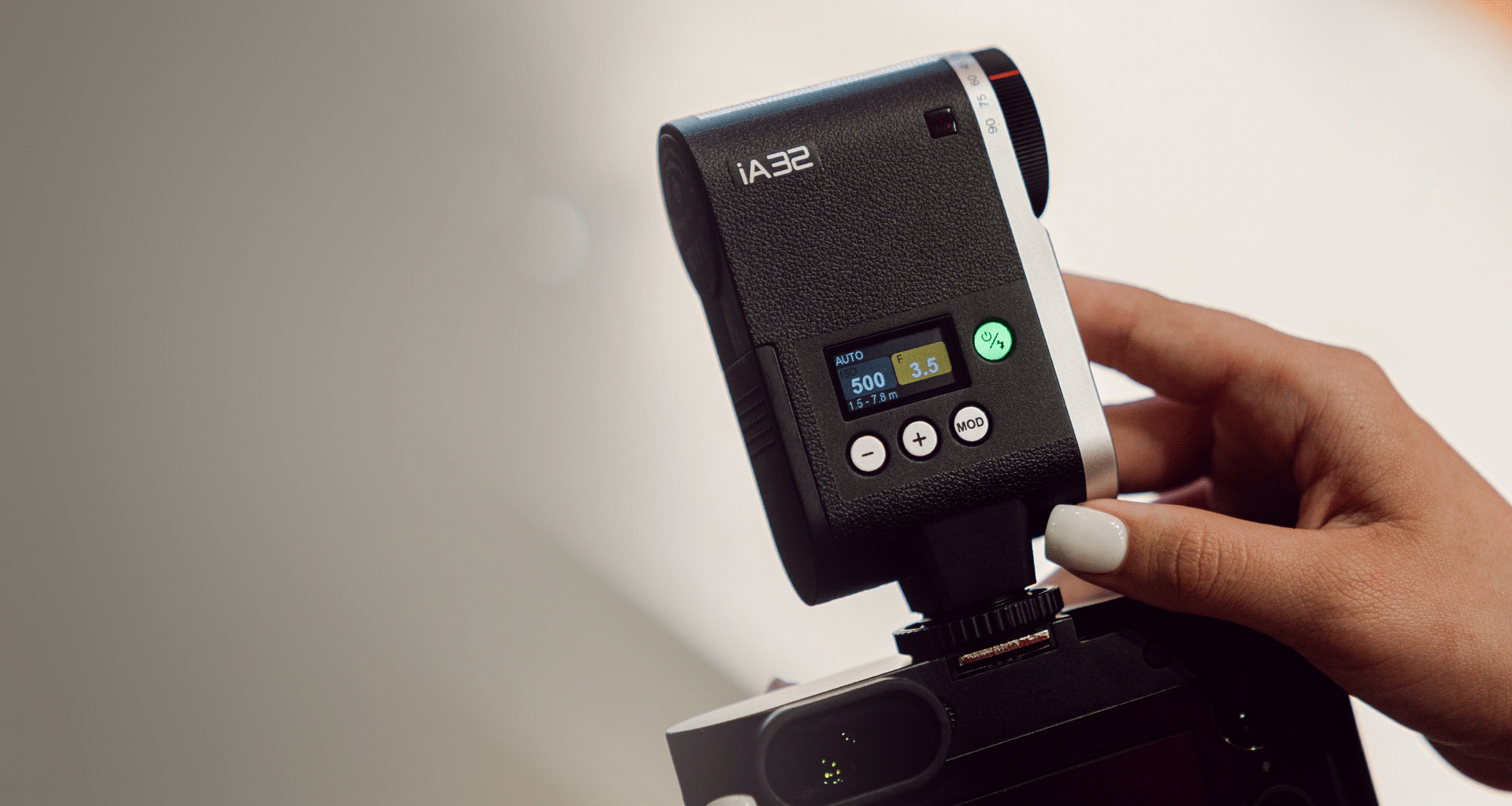● Introducing the iA32, the latest member of the Godox iFlash family. With its integrated flat design, the iA32 stays attached to your camera, ready to go anywhere. Its adjustable flash tube offers a -7° to 90° range, easily controlled by the side dial. The iA32 supports both Auto and Manual modes, providing flexibility for different shooting needs.