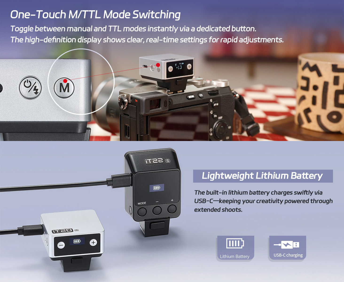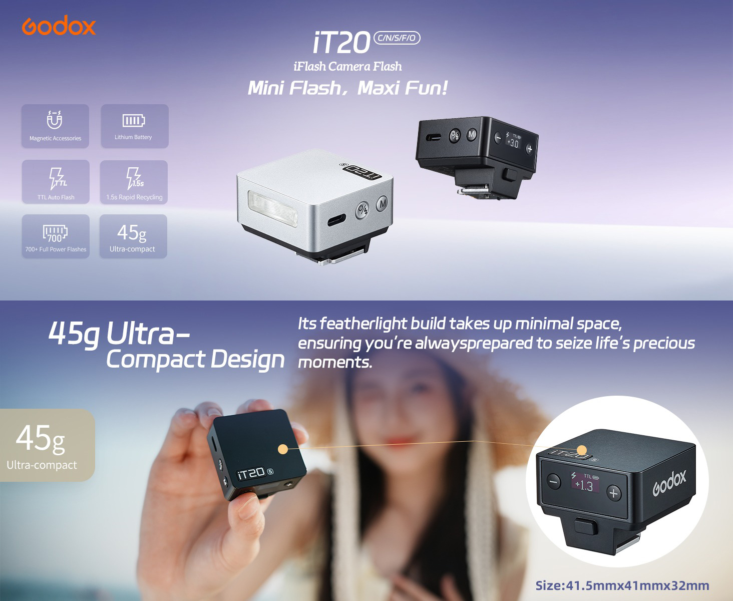 Godox iT20 Mini Pocket Flash for C/N/S/F/O TTL Cameras with One-Touch Mode Switching & 700+ Flashes