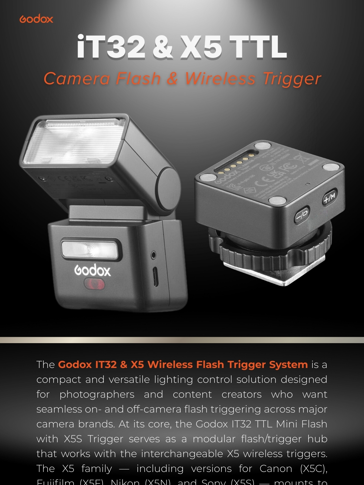 Godox iT32 TTL Mini Flash and X5 Wireless Flash Trigger for Cameras and Lighting