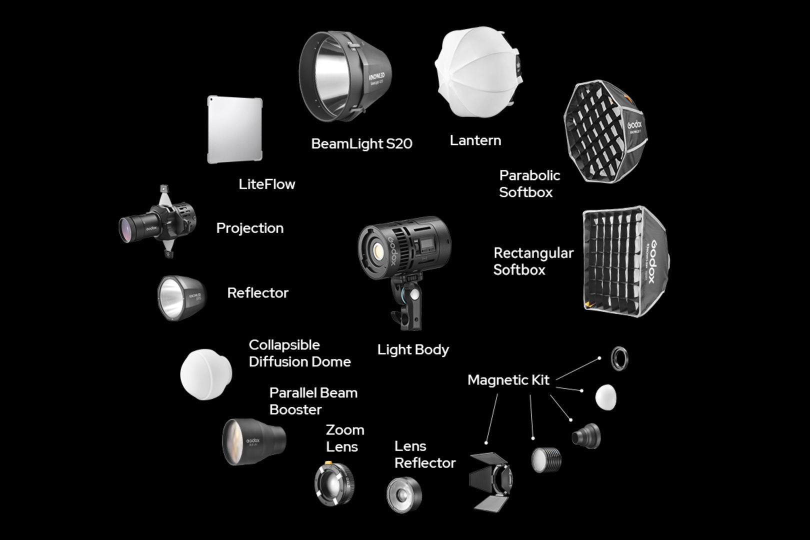 When you think of compact LED lights, you wouldn't imagine they can be as versatile as the KNOWLED MS60R RGB LED Light 4-Light Kit from Godox. While creating the KNOWLED MS60 series, Godox thought about every aspect to bring you an entire and all-new system of reliable modifiers, control methods, and power options without giving up high brightness. This kit includes four lights with lots of essential tools to power and modify the MS60R. The tiny and modular body of the 60W fixture can be easily adapted to suit your different lighting needs. The back of the light can directly mount multiple adapters that allow for multiple ways of powering the unit, while its front can be quickly modified with a collection of impressive magnetic light shapers. One of the best functions is full RGB capability, which is a valuable asset for virtually any type of image creation. This kit includes four light bodies combined with two DL5 Lite beam boosters, two collapsible diffusion domes, a wide range of magnetic modifiers, two softboxes, and power adapters and cables for battery or AC power. Two carry cases are supplied to facilitate storage and transportation.