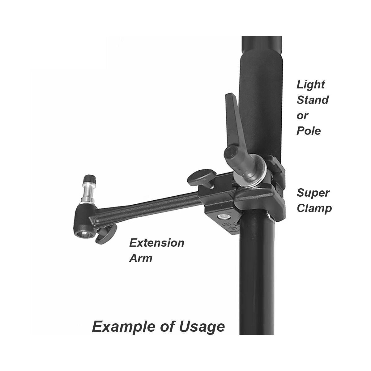 The Godox LSA-05 Extension Arm is designed for attach to a convi clamp for hanging a light or camera from the light stand or pole.