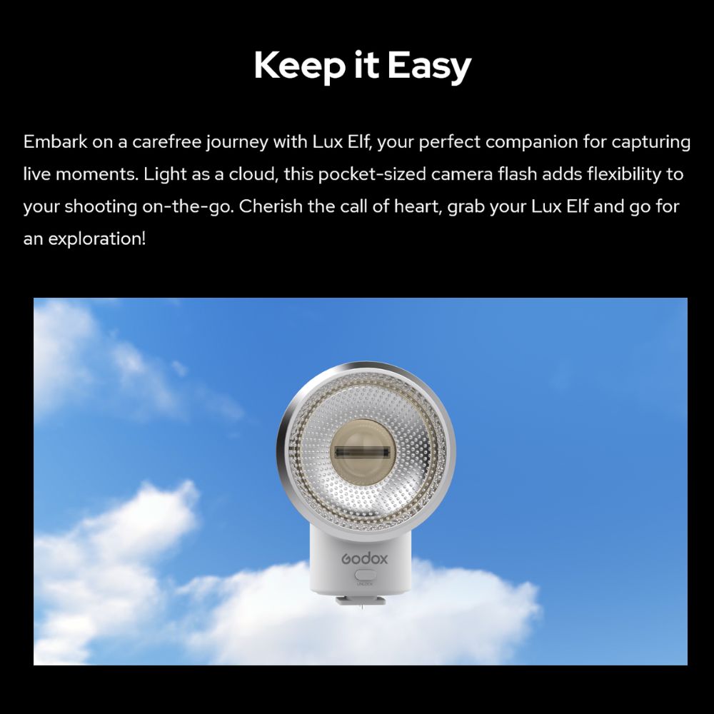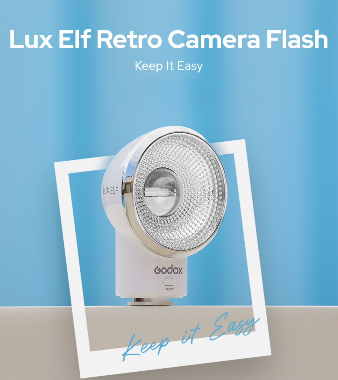 Godox Lux Elf Retro Vintage-Style Camera Flash with GN 19.7', Output Power Selection Dial, and Up to 400 Flashes on Full Charge for Photography