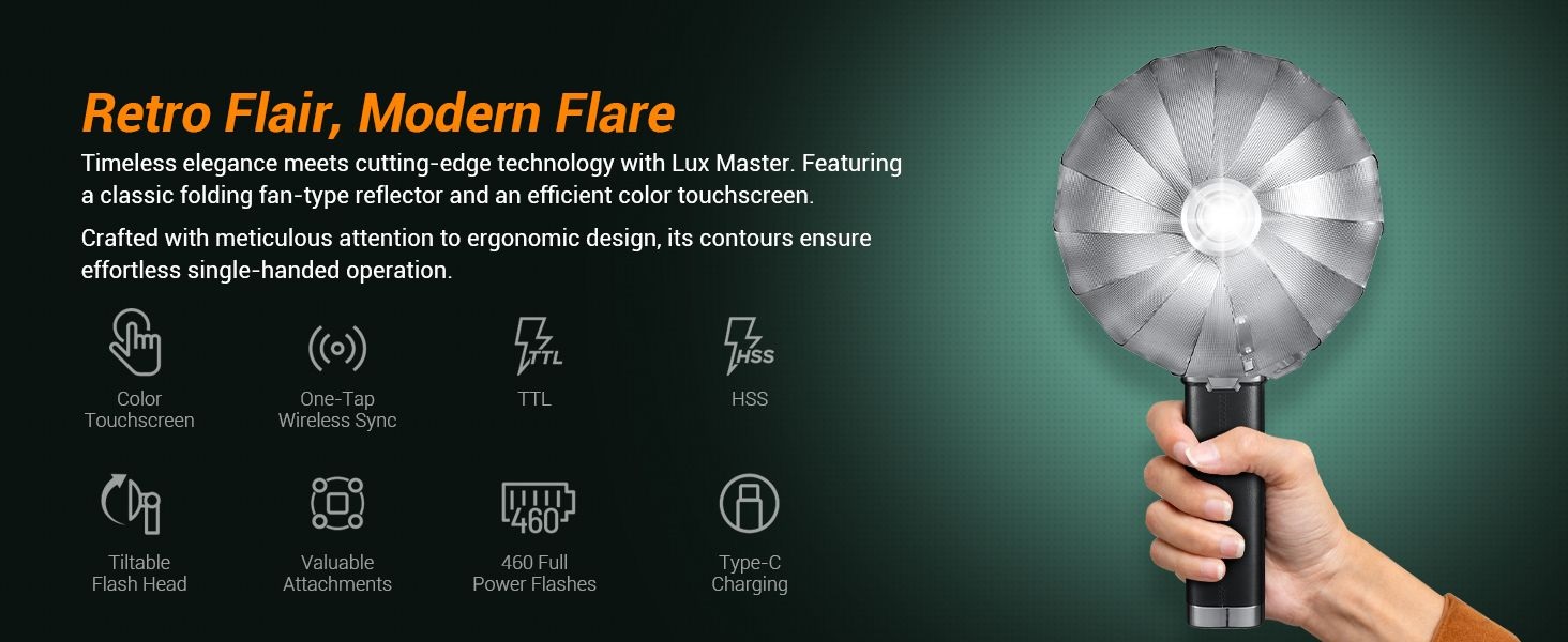 Godox Lux Master 2.4GHz Wireless TTL HSS Retro Camera Flash with Max 100m Operatiol Range and 2980mAh Battery for Photography