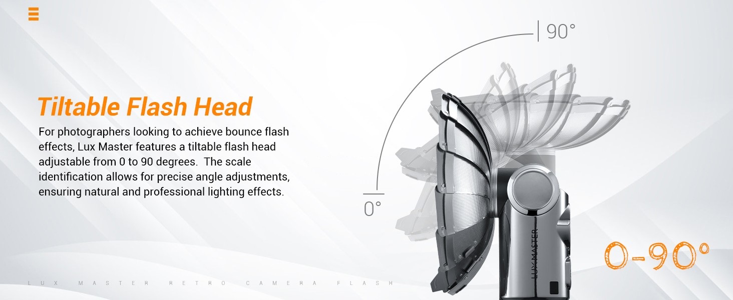 Lux Master, an intelligent retro camera flash that focuses on both external and internal improvements. The design of reflector adopts the principle of traditional Chinese folding fans, achieving minimalist storage through manual extension and retraction.