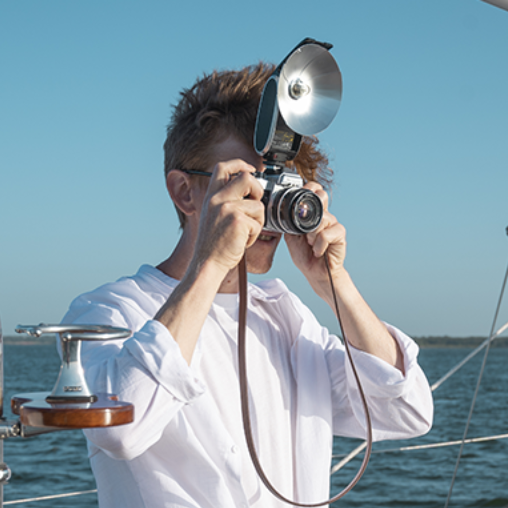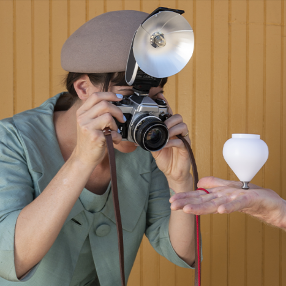 ● The retro vibe of the Lux Senior resonates more in use. Experiencing the classic way of photography with the fan-type silver reflector to shape the light and the flash bulb combining a vintage shape with new technology.
