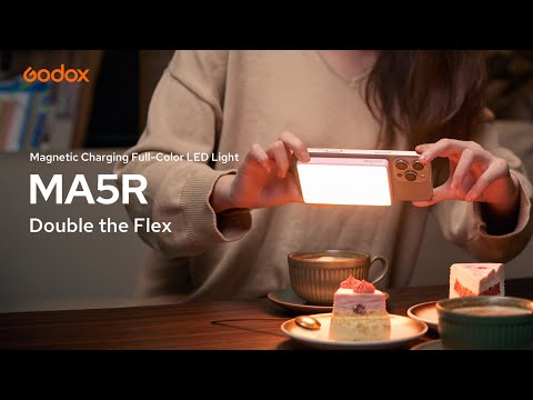 Godox MA5R Magnetic RGB Full Color LED Selfie Light / Wireless Power Bank with 3.7V 4900mAh Lithium Battery, 1800-10000K CCT Range, 14 Lighting Effects, Onboard Control, Bluetooth and NFC Connection for Photography & Video Content Creation