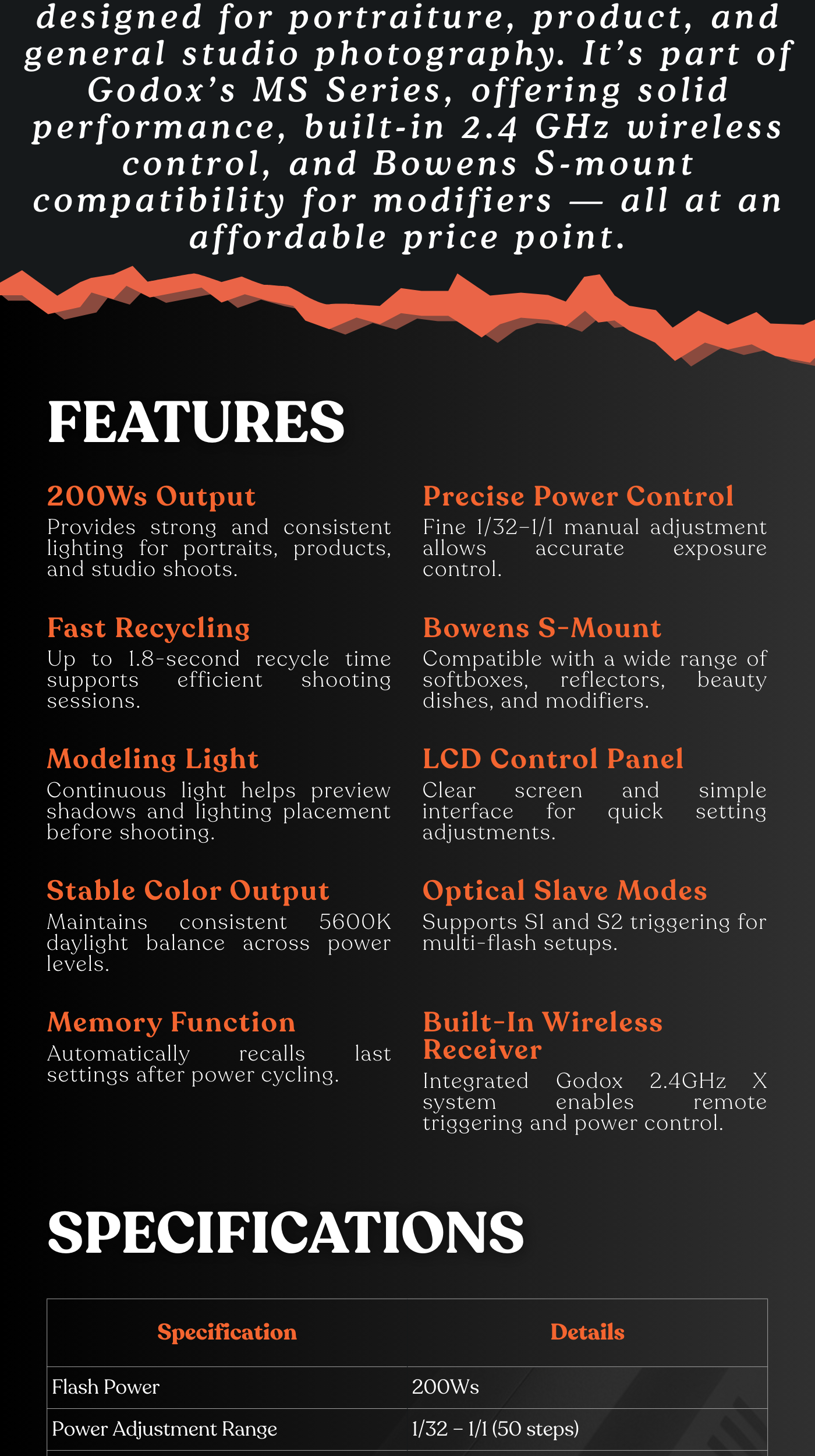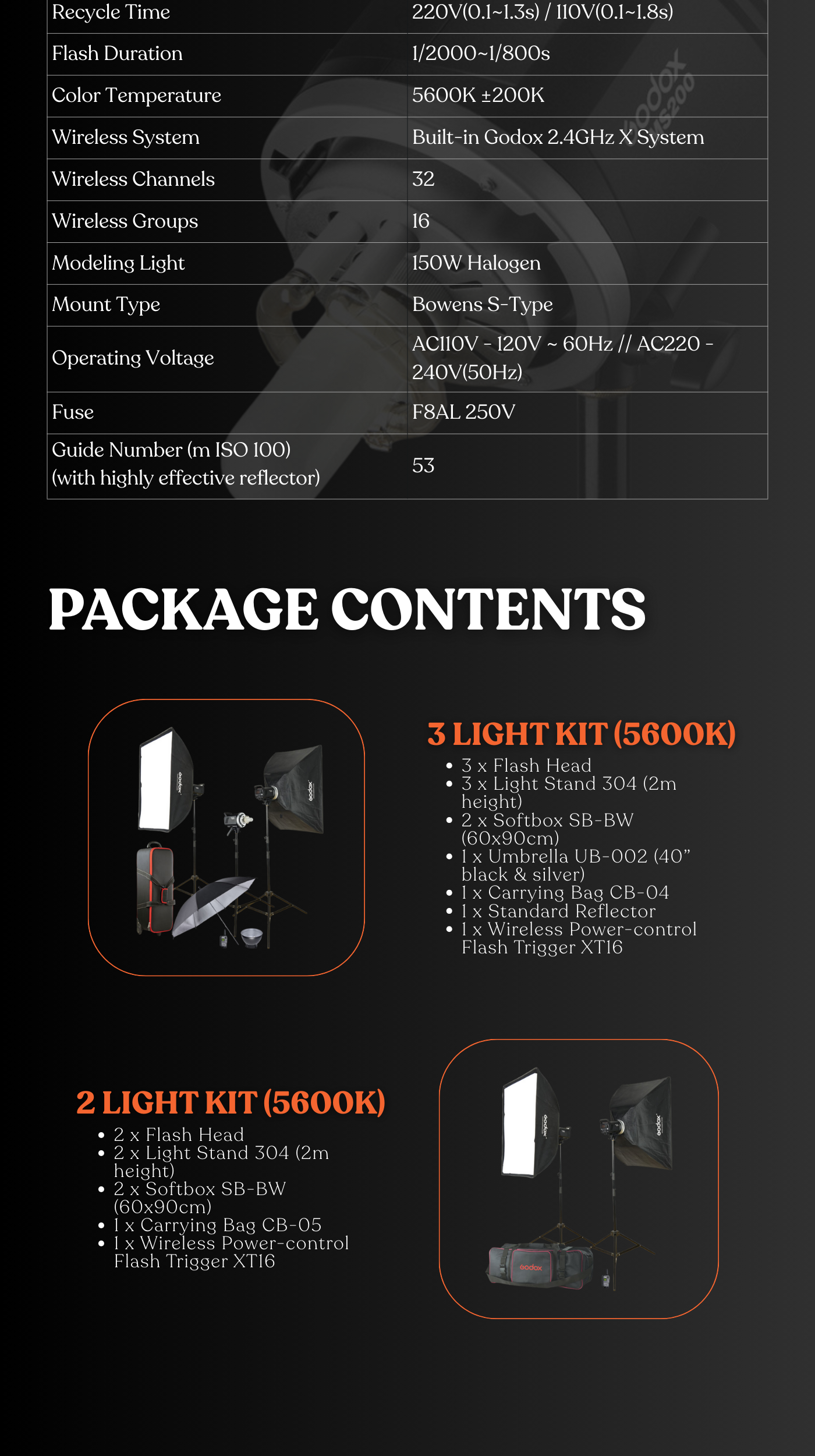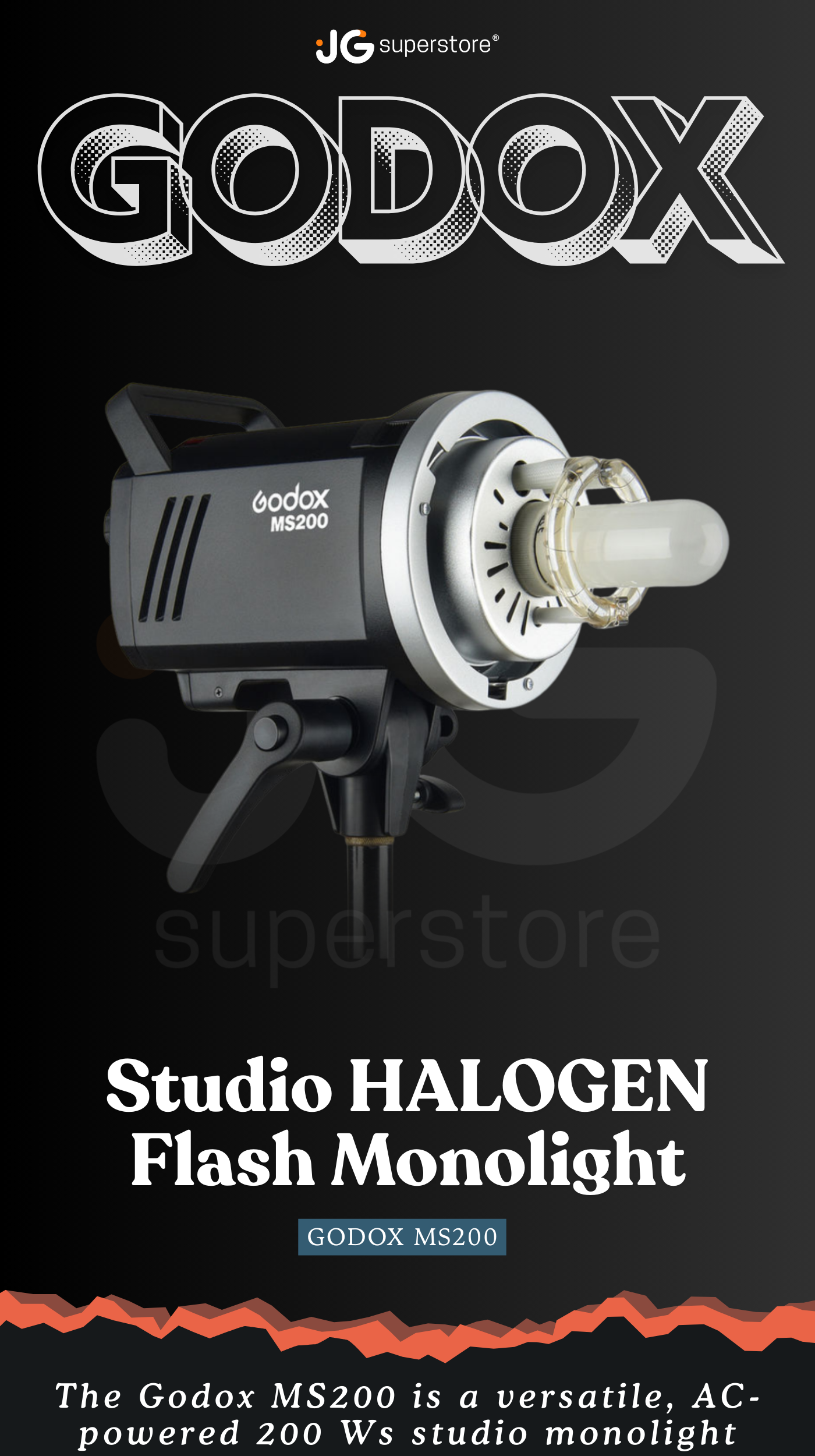 Godox MS200 200W Compact Studio Flash Kit Monolight with Softbox, 150W Halogen Modeling Lamp & 5600K Color Temperature