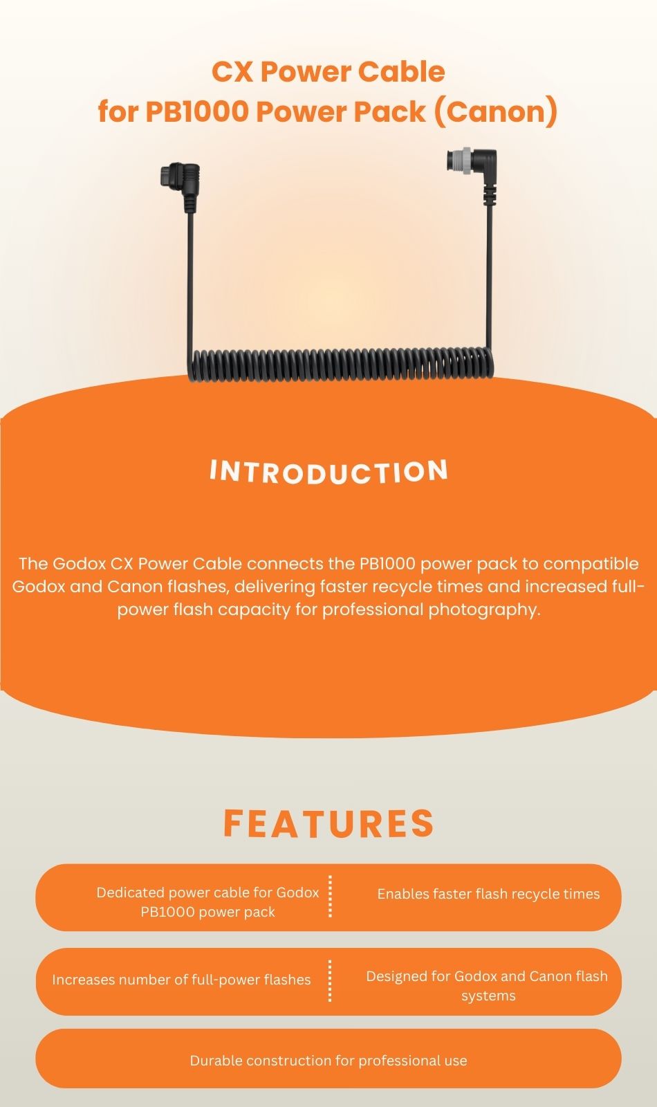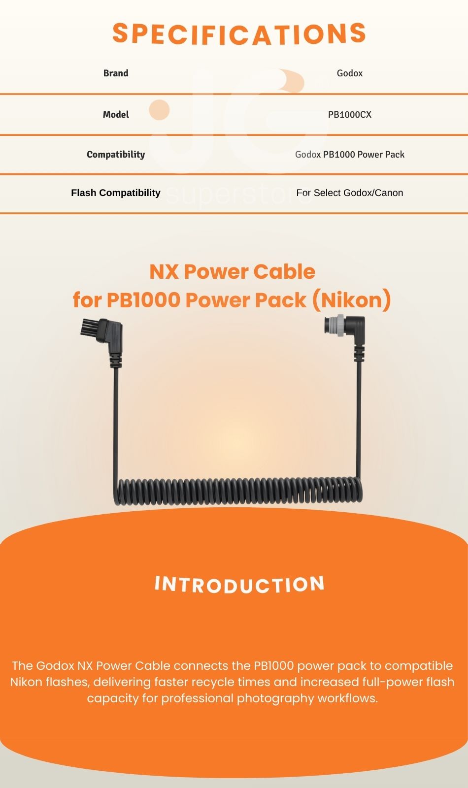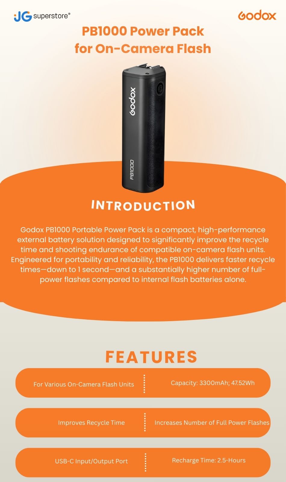 Godox PB1000 External Power Pack & Cables for Select Canon, Nikon, Sony Flashes for Photography