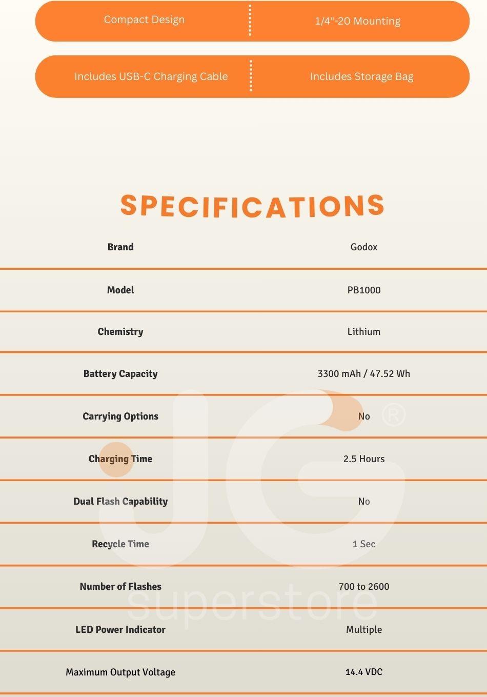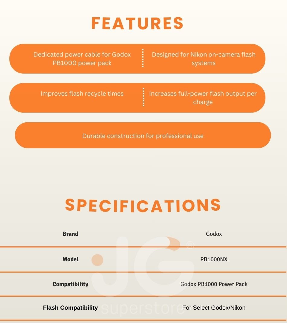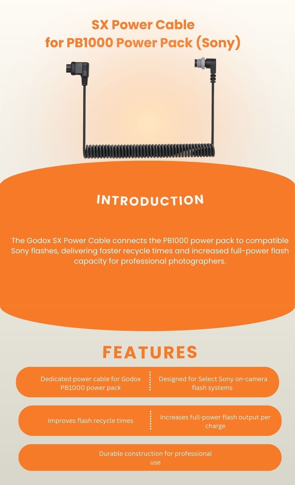 Godox PB1000 External Power Pack & Cables for Select Canon, Nikon, Sony Flashes for Photography