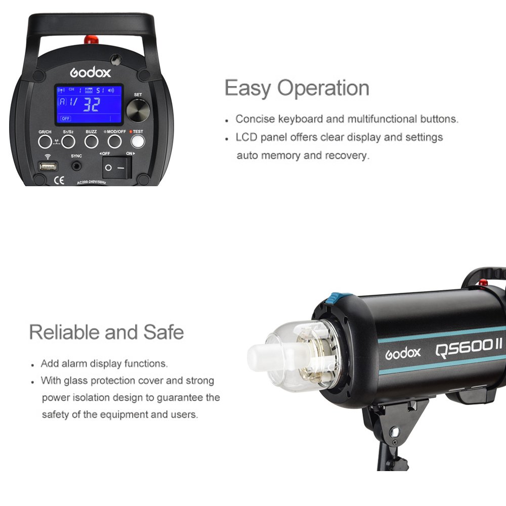 Godox QS600II GN76 with Built-in 2.4G Wireless X System Flash Strobe Light
