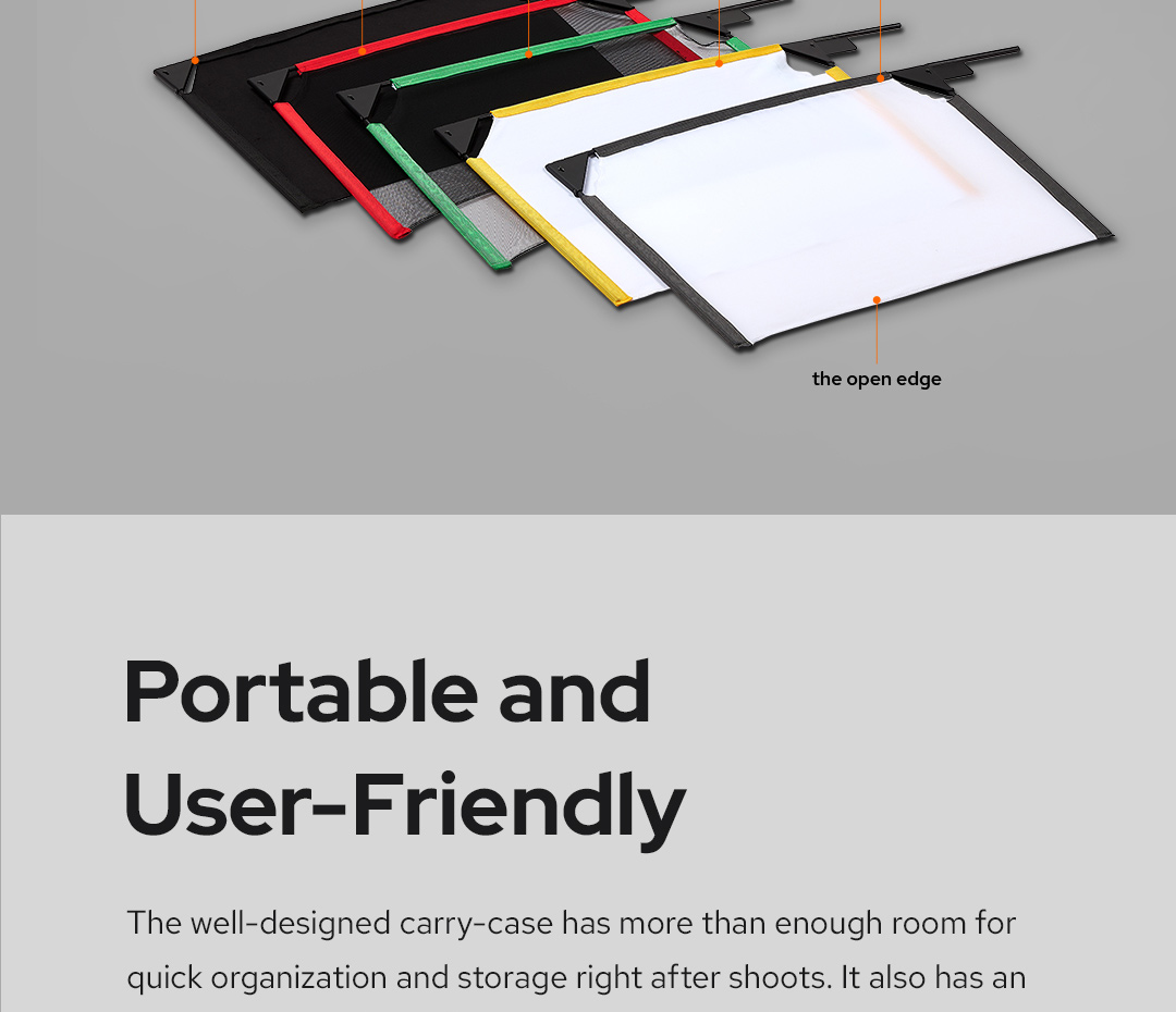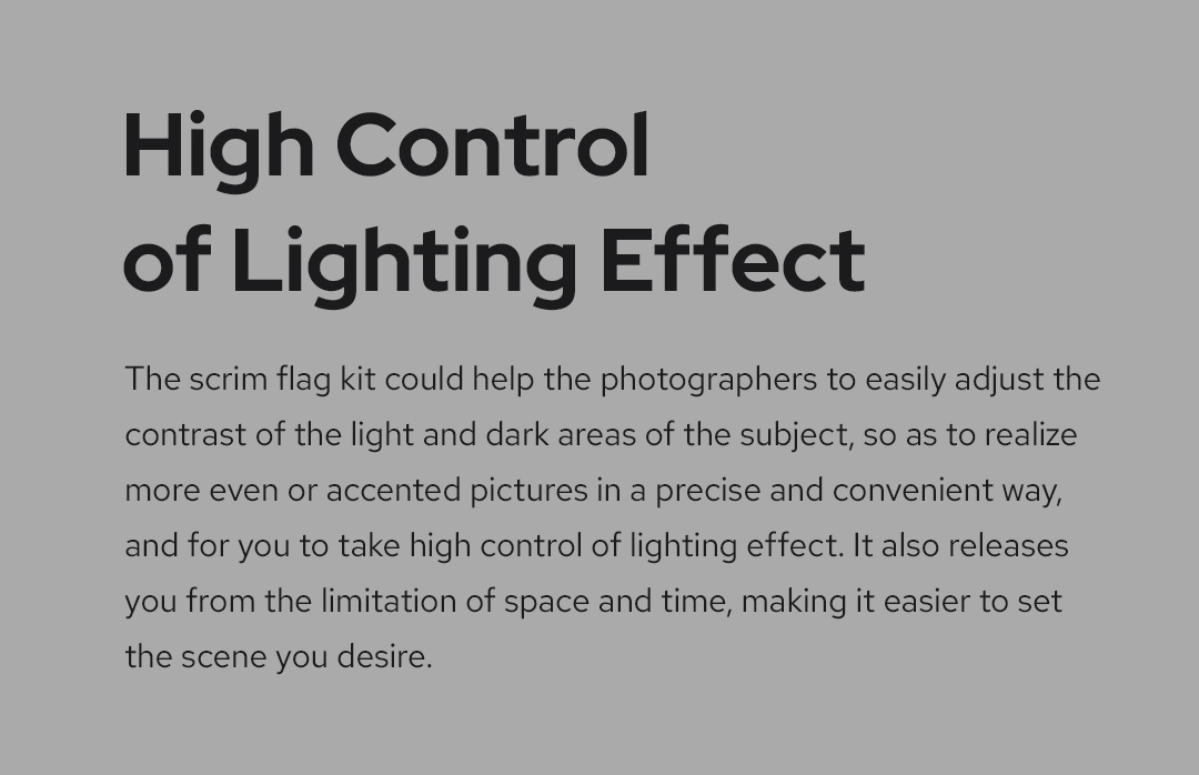The kit offers image makers an easy way to adjust the contrast of the light and dark areas of the subject to conveniently render a personal style by taking control of the lighting scheme.