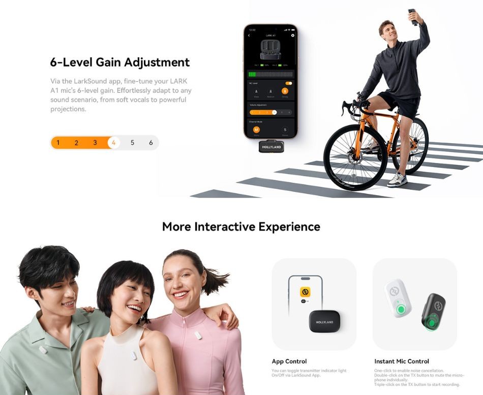 2 x Hollyland LARK A1 Clip-On Wireless Microphone Transmitter