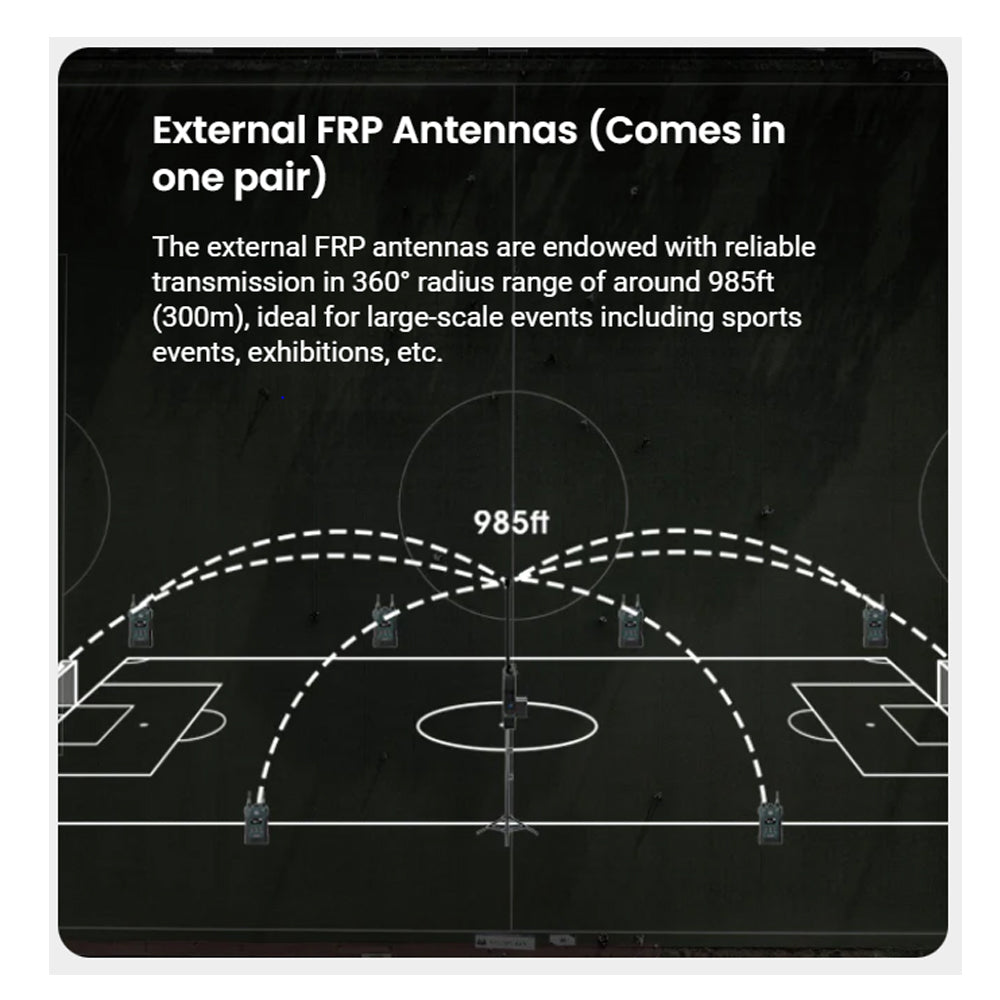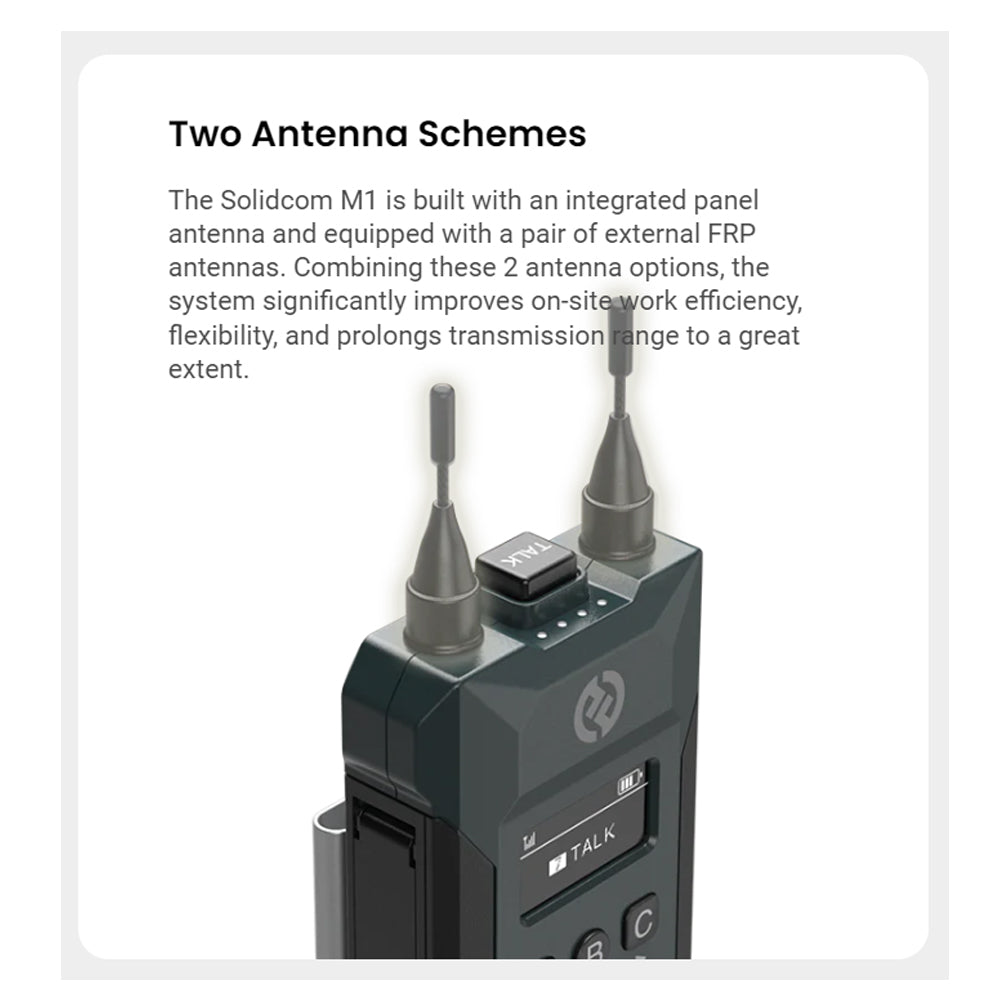 The Solidcom M1 full-duplex wireless intercom system comes standards with 8 beltpacks and supports multiple systems cascading with a maximum of 3 communication groups. Each base station offers a directional transmission range up to 1300ft (400m) with the built-in antenna and reliable transmission in a 360° radius range of around 985ft (300m) with external FRP antennas. This system offers a versatile intercom solution for medium to large events production ranging from church events, livestreaming to electronic field productions, exhibitions, concerts, etc., where the teams need to execute with precision.