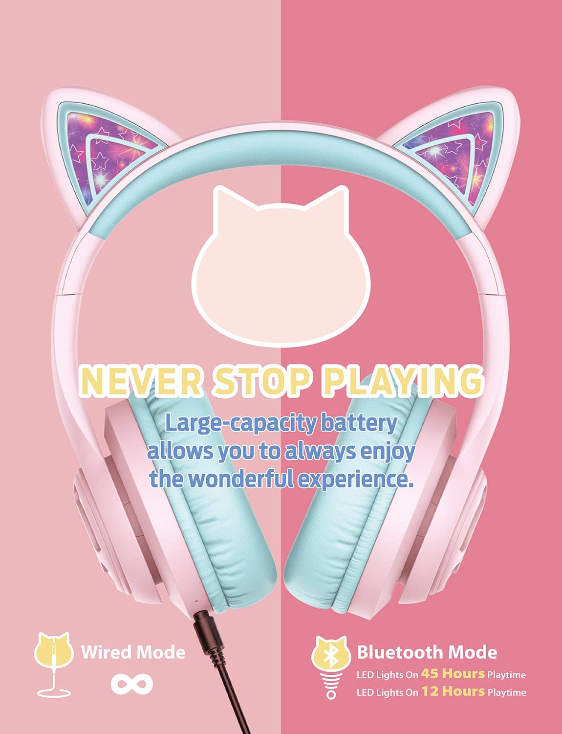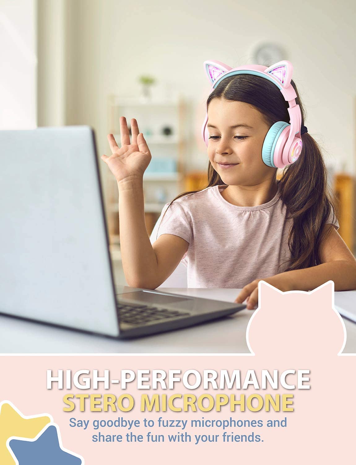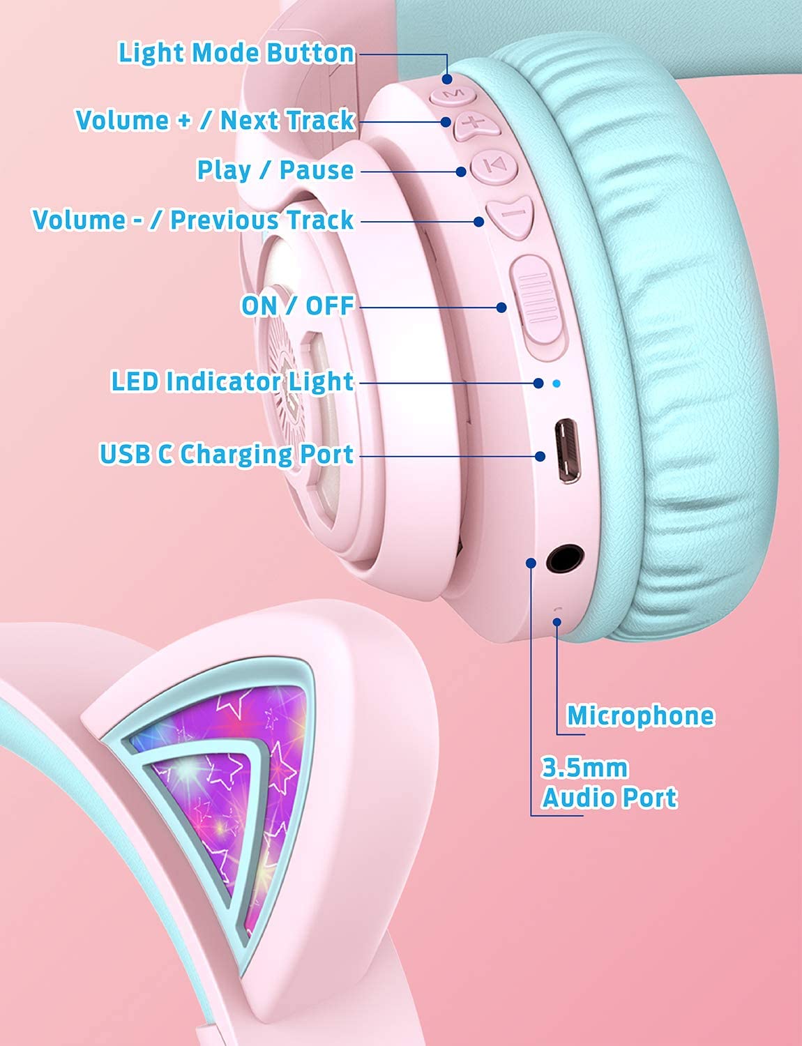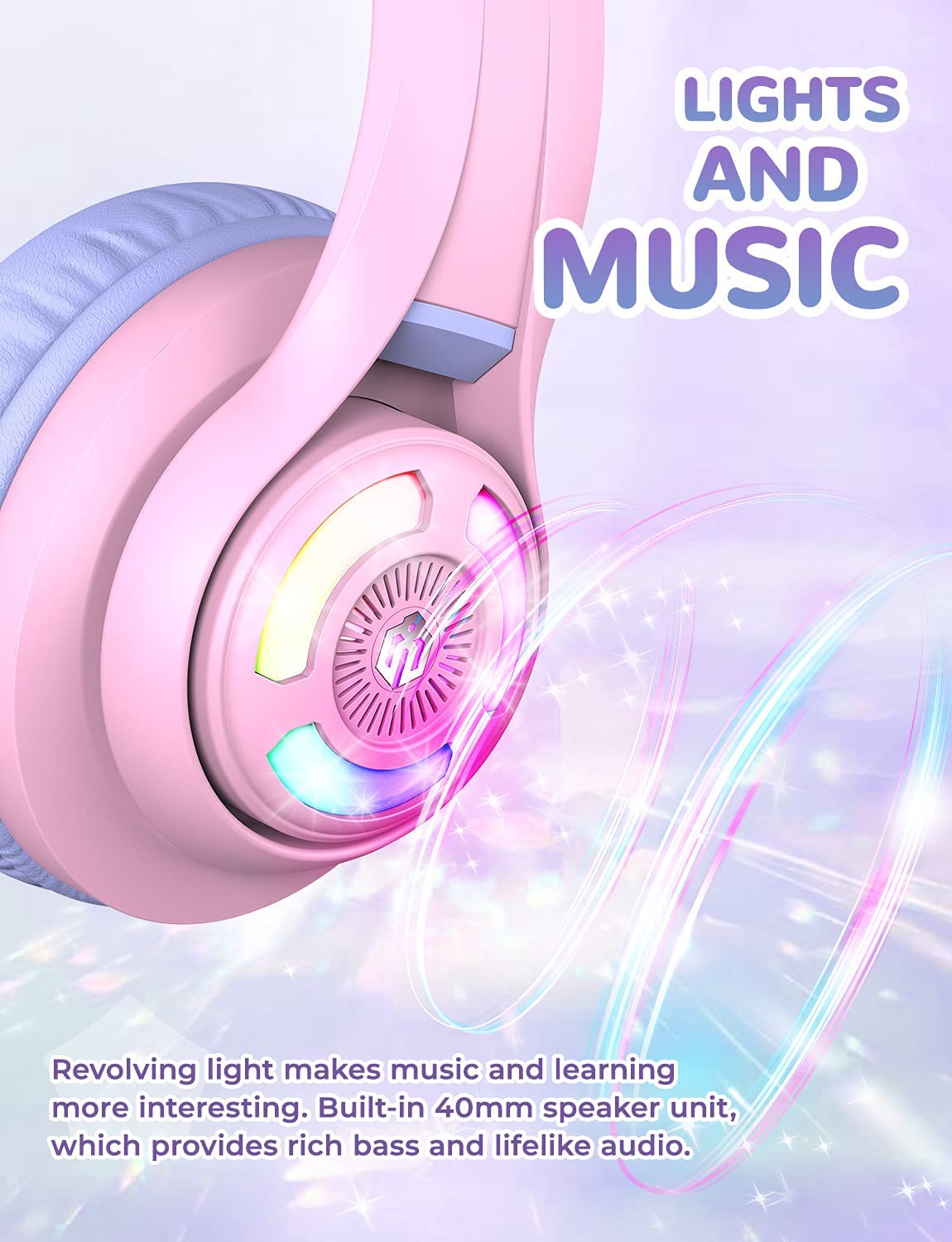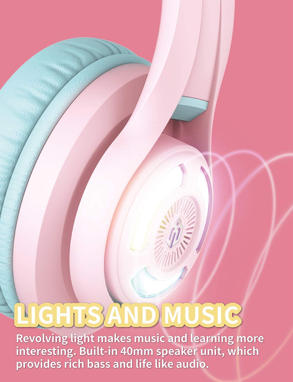 - BEAUTIFUL AND STYLISH - It is the evolution of children's headphones, great sound quality and a cute, fun and kid-friendly design. Your little ones will love the iClever BTH13 Kids Headphones, whose LED lights are controlled by a separate button. When pressed in Bluetooth mode, it will turn off the lights to save batteries.