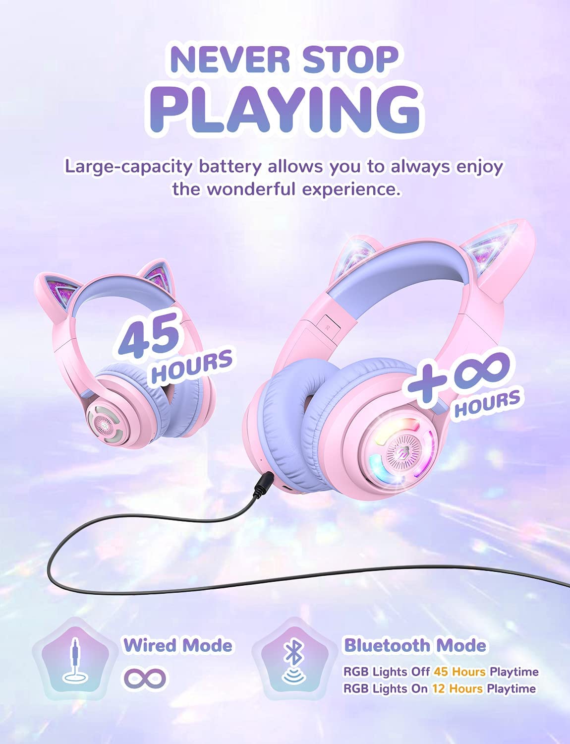 - Limit the volume but not the fun! - Who doesn't love the fun, adorable look of kitten ears--especially kids! Your little ones will adore the BTH13 cat ear Bluetooth headset, which iClever has designed especially for children. Their attractive appearance, along with three-level volume limit and long battery life make this a both functional and fun thing to have!