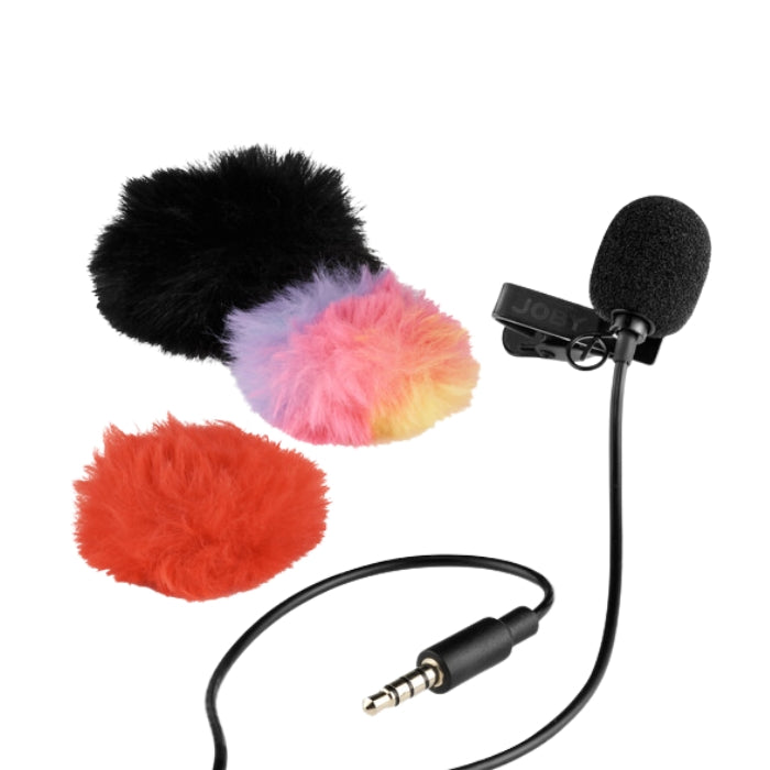 JOBY Wavo Lav Mobile Clip-On Omnidirectional Condenser Lavalier Lapel Microphone with 3.5mm TRS / TRRS Output, Faux Fur Windscreen, Carrying Pouch for Cameras and Smartphones | 1716
