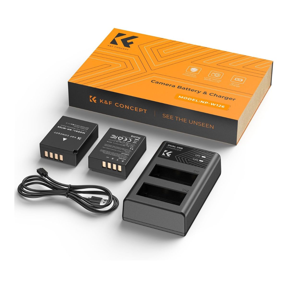 K&F Concept (2-Pack) NP-W126S NPW126 Battery and Dual Charger Kit for FUJIFILM XS10 XT30 XT20 XE4 X100V A5 Camera with Micro USB and Type C Port