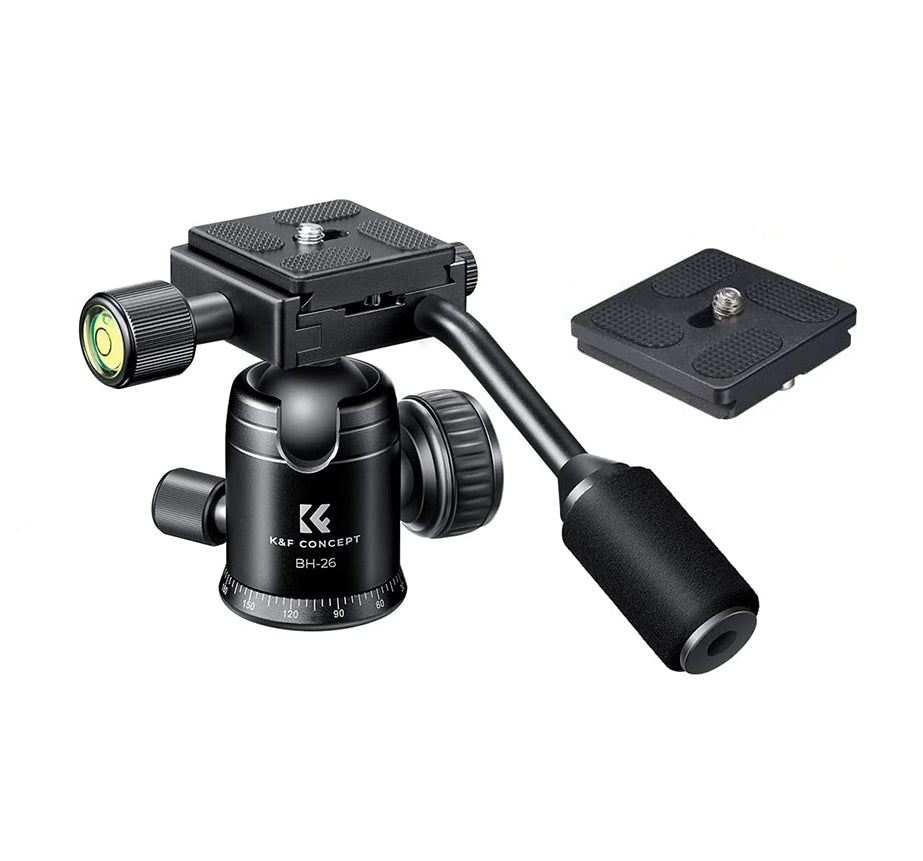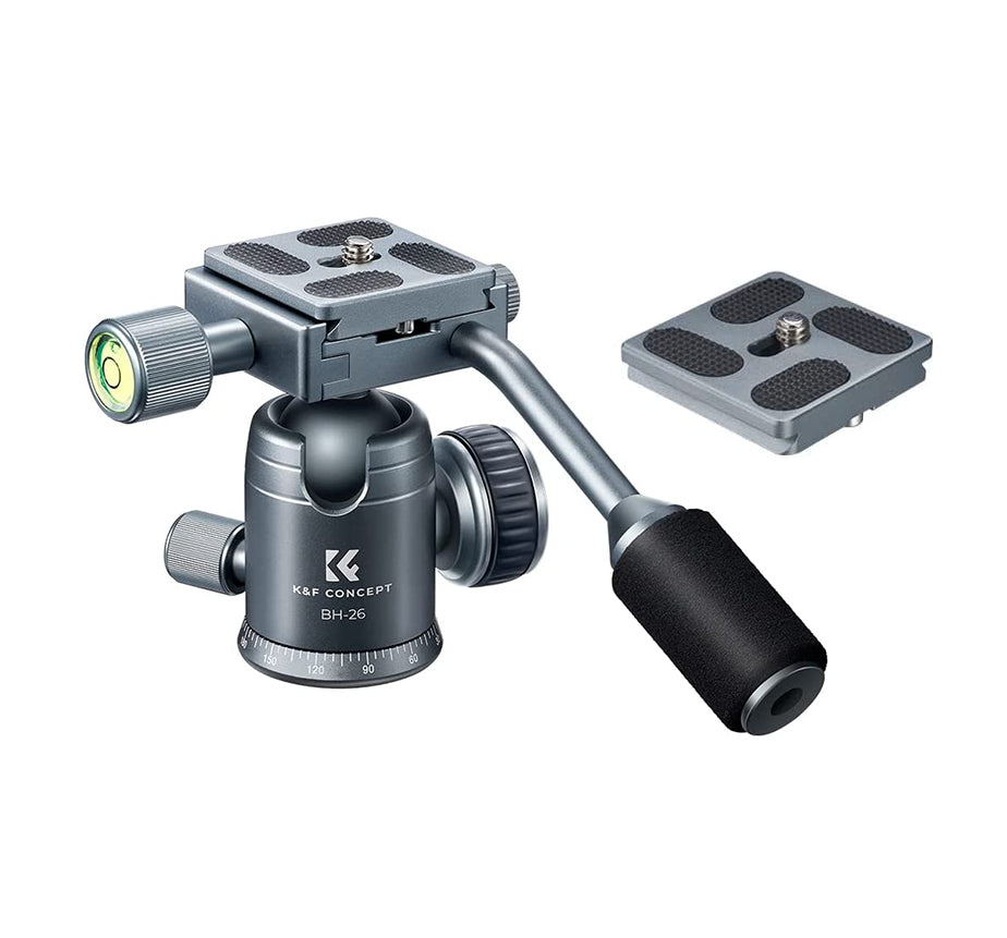 K&F Concept BH-26 360 Degree 26mm Panoramic Ball Head Mount with QR Quick Release Plate, 1/4" Bolt and 8kg Max Load for Tripod Monopod and Slide Rack (Black, Gray) KF31-049 KF31-049V1
