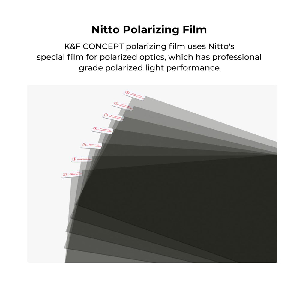 Professional-grade Performance: K&F Concept polarizing film utilizes specially crafted optical film from Nisshin, high transmittance for 380-700mm unpolarized light and a polarization rate of up to 99.99%.
