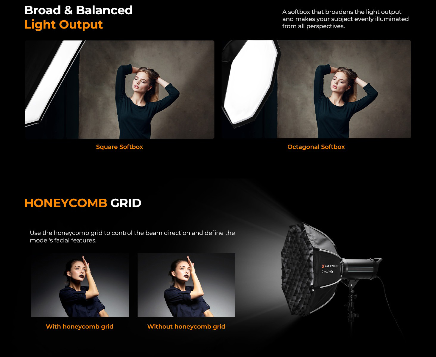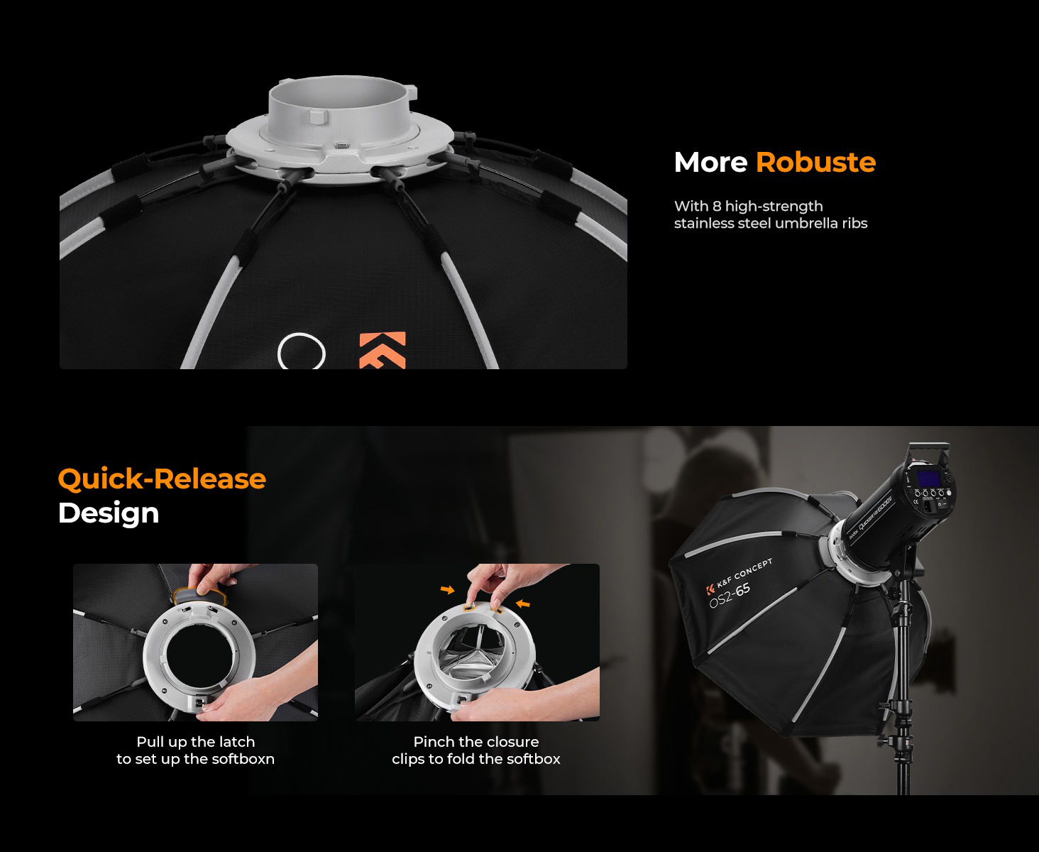 K&F Concept 65/90cm Quick Release Octagon Softbox, Bowens Mount, Dual Diffusers | OS2-65/OS2-90