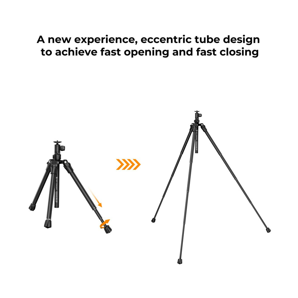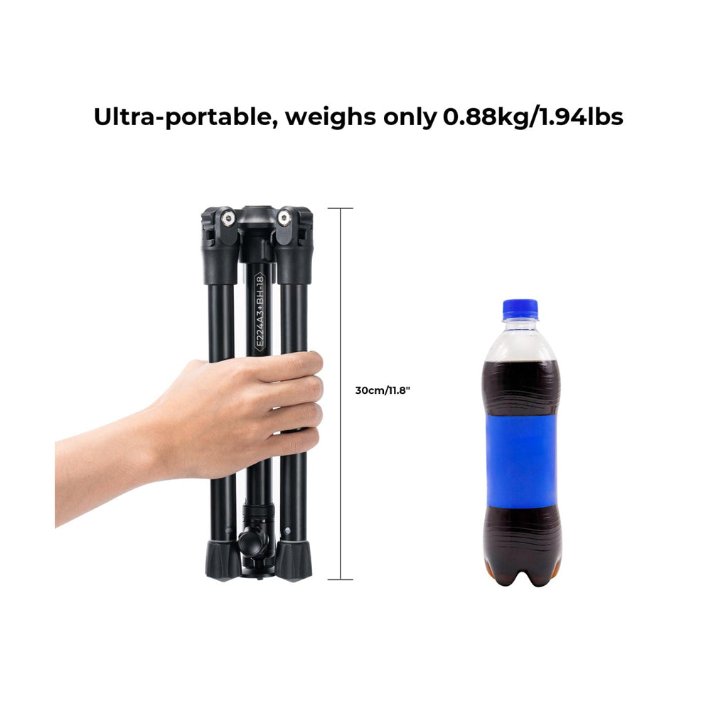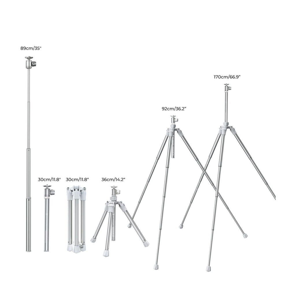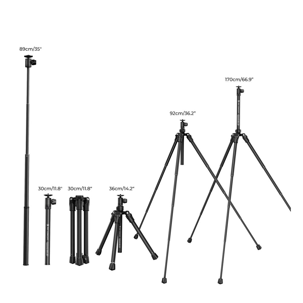 Super Portable For Travel: 4 section tube can adjust the working height of the tripod from 36cm/14.1'' to 170cm/66.9'' in a few seconds; The folded length is only 30cm/11.8'' and weighs only 0.88KG/1.94lbs, it is perfect for indoor/outdoor travel photography.