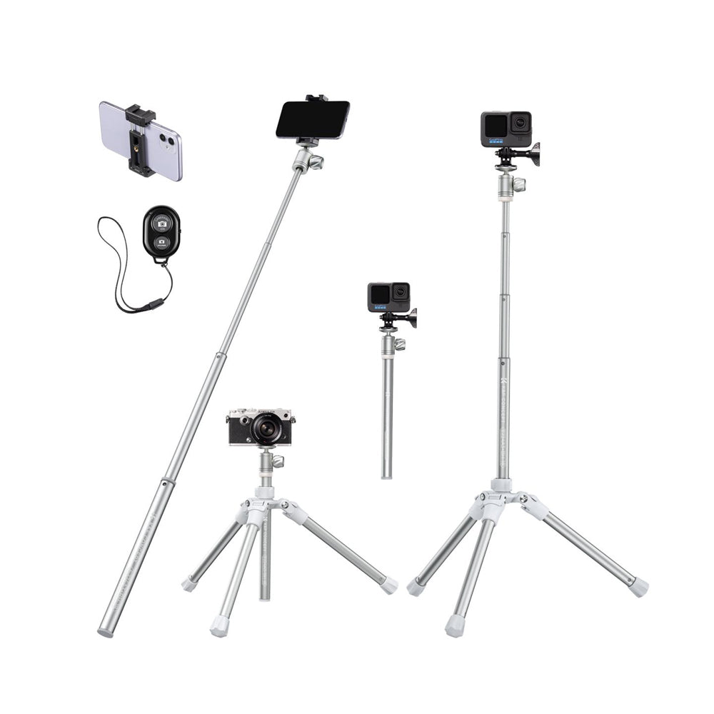 Flexible Tripod: You can switch between a tripod, desktop stand, and selfie stick. Which is very convenient and meets the needs of many different photography functional scenarios such as traveling, vlog shooting, live streaming, etc.