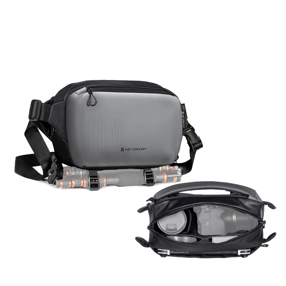 The K&F KF13-188 Sling Bag is a compact, stylish solution for photographers and creators who want protection, organization, and portability in one. With a thoughtful interior design including removable padded dividers, it securely houses a mirrorless or DSLR body plus one lens or accessories. The bag is built with soft yet durable padding, a soft lining to protect gear from scratches, and a weather-resistant exterior—ideal for daily shoots, travel, or on-the-go sessions. An adjustable crossbody strap and tripod/external gear straps add convenience, while quick-access zippers make gear retrieval effortless without exposing everything.