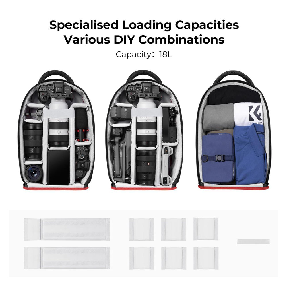 The K&F Concept DSLR Photography Camera Backpack is your perfect companion for capturing moments and exploring the great outdoors. This versatile backpack is designed to securely hold and safeguard your photography gear, including 1-2 DSLR/SLR cameras, 4-5 lenses, a flash speedlite, and a laptop of up to 13.3 inches. It even has room for a lightweight tripod or monopod, making it ideal for various photography adventures. With exterior dimensions of 17.3 x 11 x 5.5 inches and interior dimensions of 16.1 x 10.6 x 5.3 inches, this camera bag offers ample space and versatility. Crafted from water-repellent nylon with heavy-duty stitching and anti-theft zippers, it provides reliable durability and protection for your equipment. The padded design ensures that wearing this professional camera backpack is comfortable, and the shoulder straps are thoughtfully engineered to distribute weight effectively. Customizable movable dividers enable optimal storage, making it adaptable for both photography enthusiasts and outdoor travelers. Whether you're photographing, hiking, mountaineering, traveling, or simply shopping, this multifunctional camera backpack is your trusty companion for any adventure.