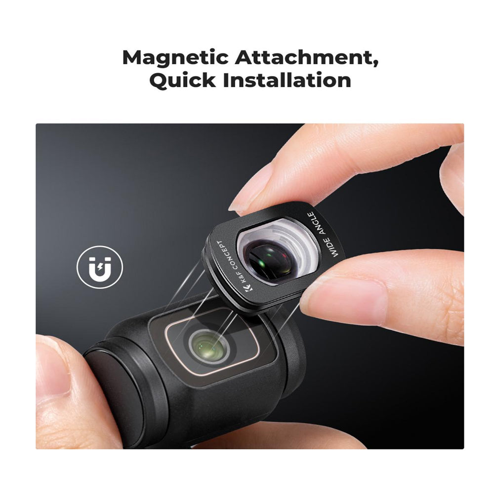 • Wide Angle Lens Function- This wide-angle lens from K&F Concept is specially designed for DJI Osmo Pocket 3, increases FOV of your lens to 112°, easily magnetic attach to the front of your Osmo Pocket 3 lens, and instantly expands the field of view for breathtaking wide-angle photography.
