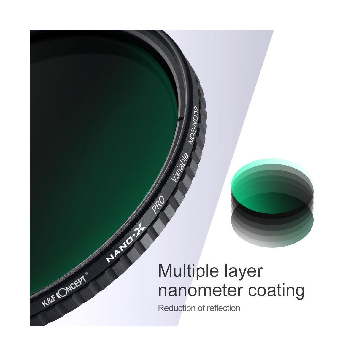 K&F Concept Variable ND Filter ND2-ND32 (1-5 Stops) Neutral Density Nano-X Optical Glass Lens Filters with Waterproof & Scratchproof Multi-Layer Protective Coating and Ultra-thin Frame for DSLRs and Mirrorless Cameras