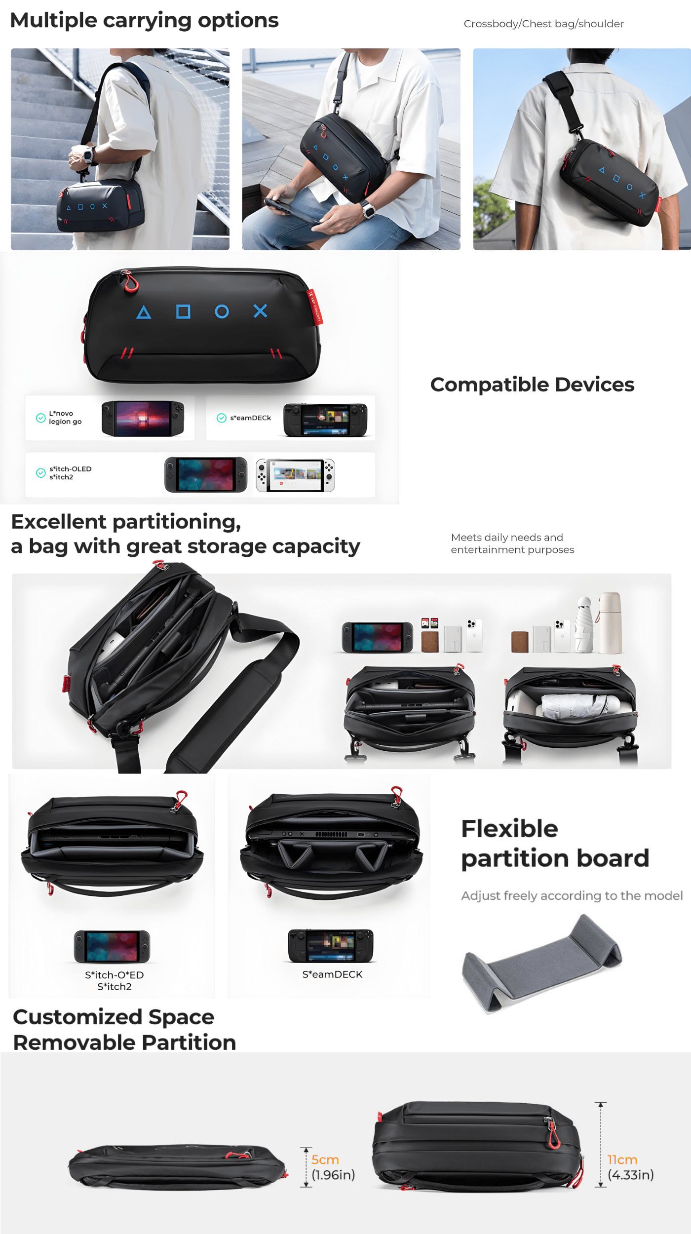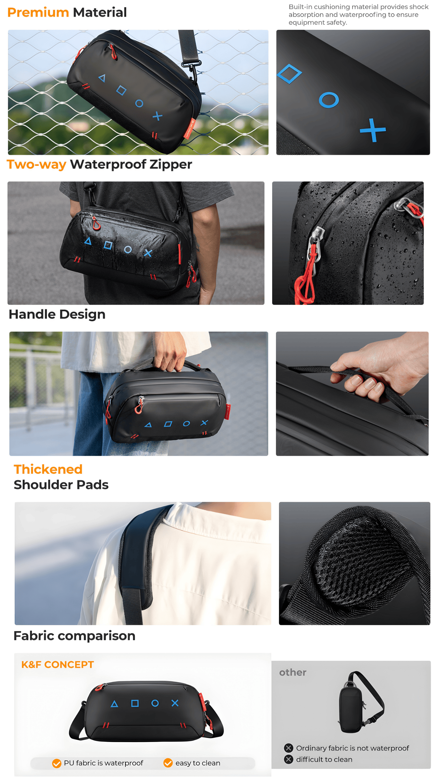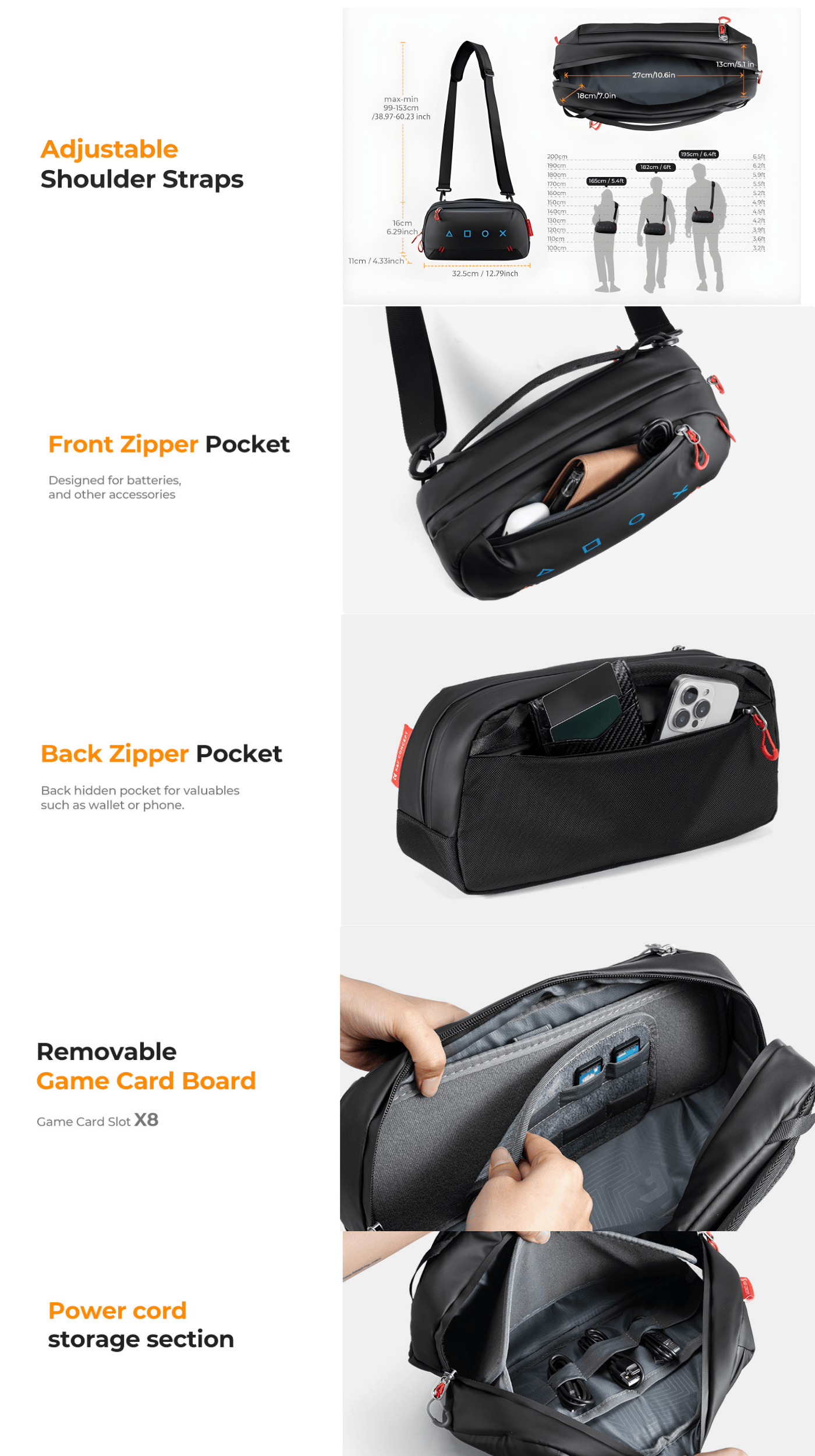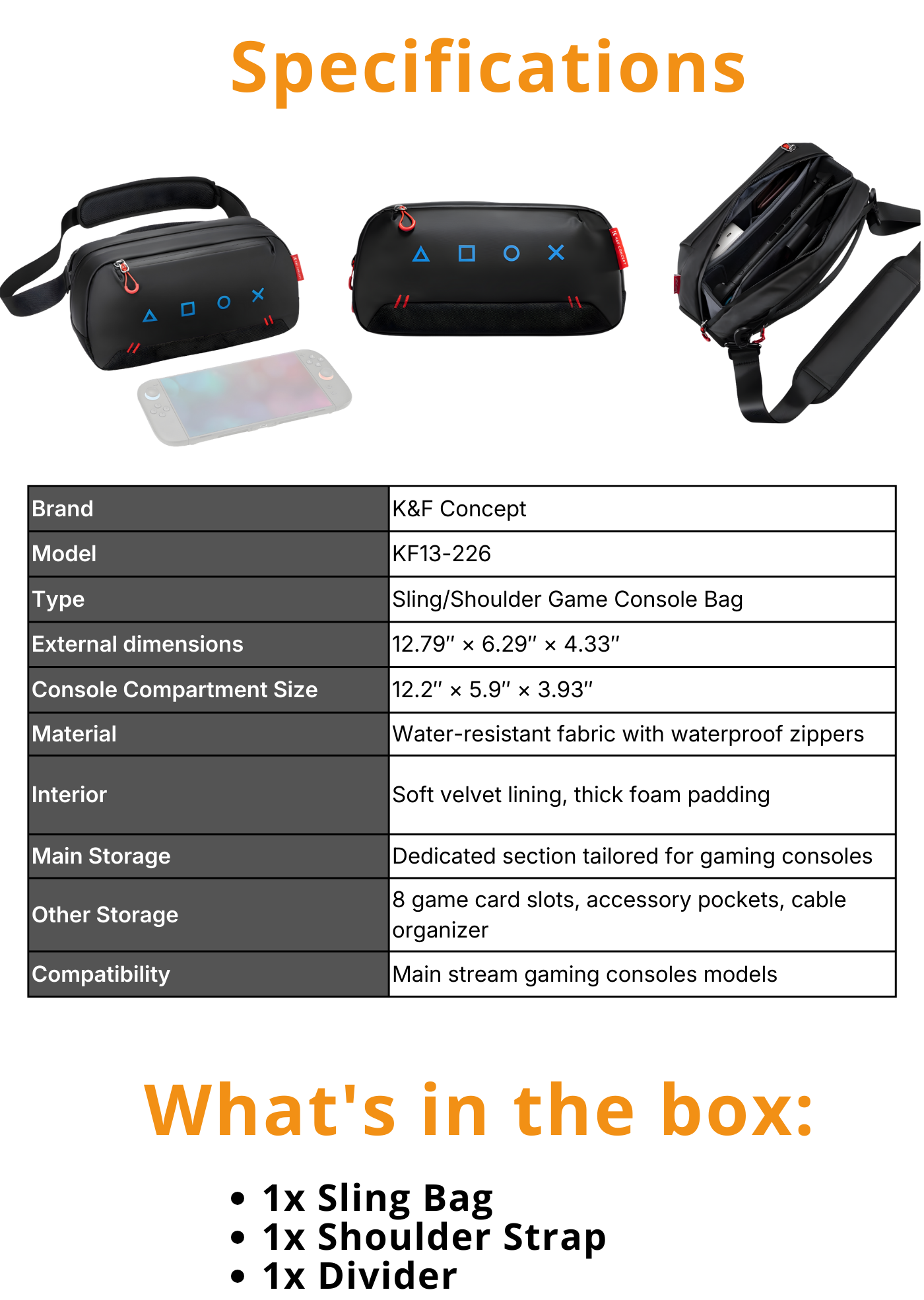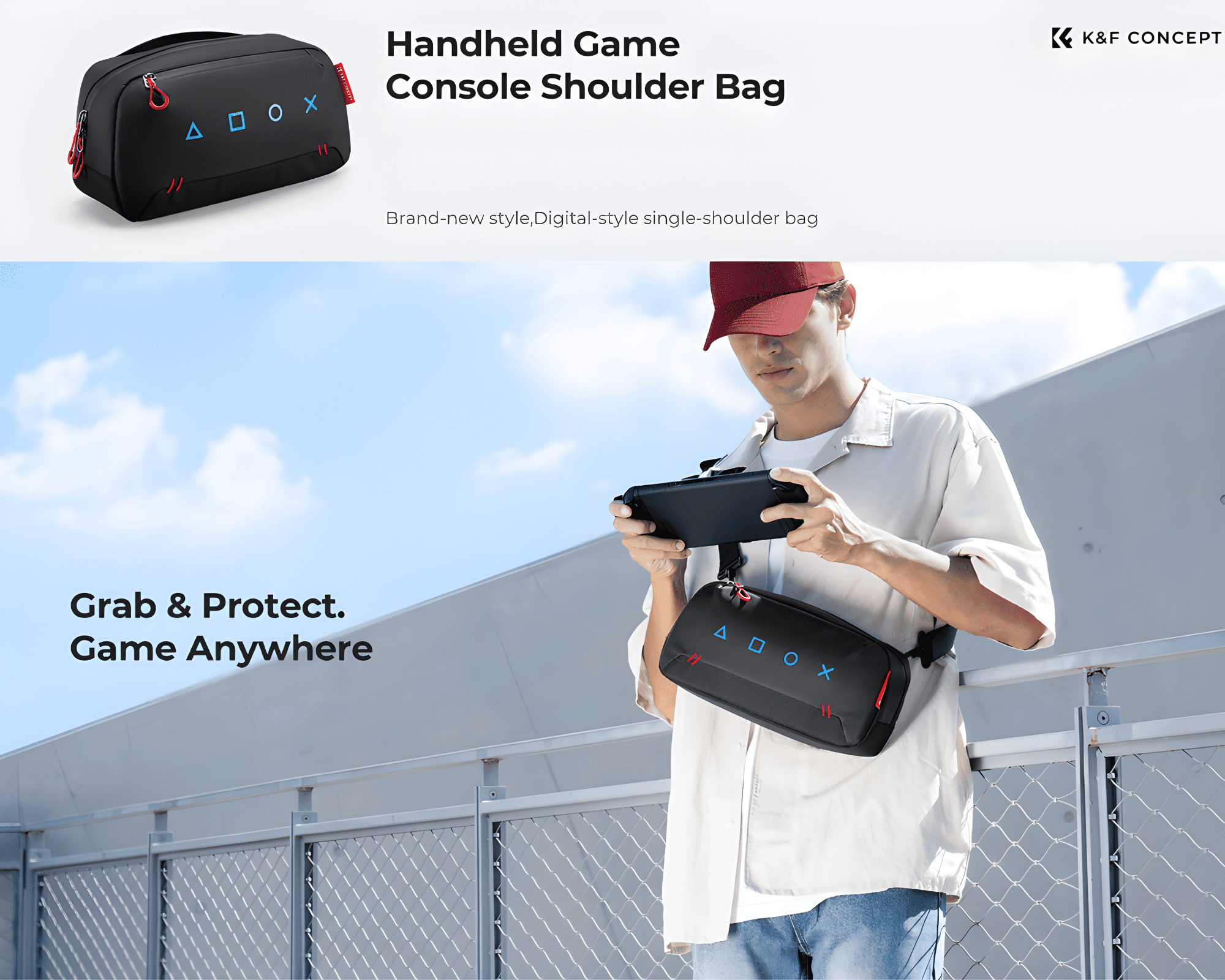K&F Concept Travel Sling Bag is a compact, lightweight carrying solution designed for handheld gaming consoles like the Steam Deck OLED, Nintendo Switch 2, PS Portal, and similar devices. It protects your console from scratches and bumps with velvet lining and thick foam padding.