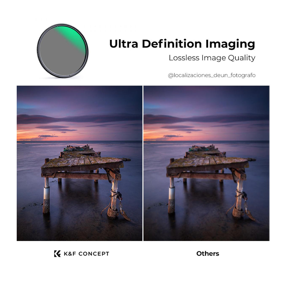 K&F Concept 2 in1 Filter Kit: Consists of Nano-X Polarising filter (CPL filter), MC UV filter, two metal lens caps and storage bag, K&F Concept filter kit makes your photographic journey easier and more comfortable.
