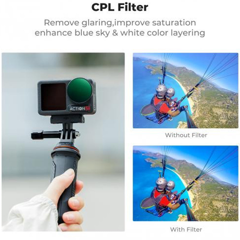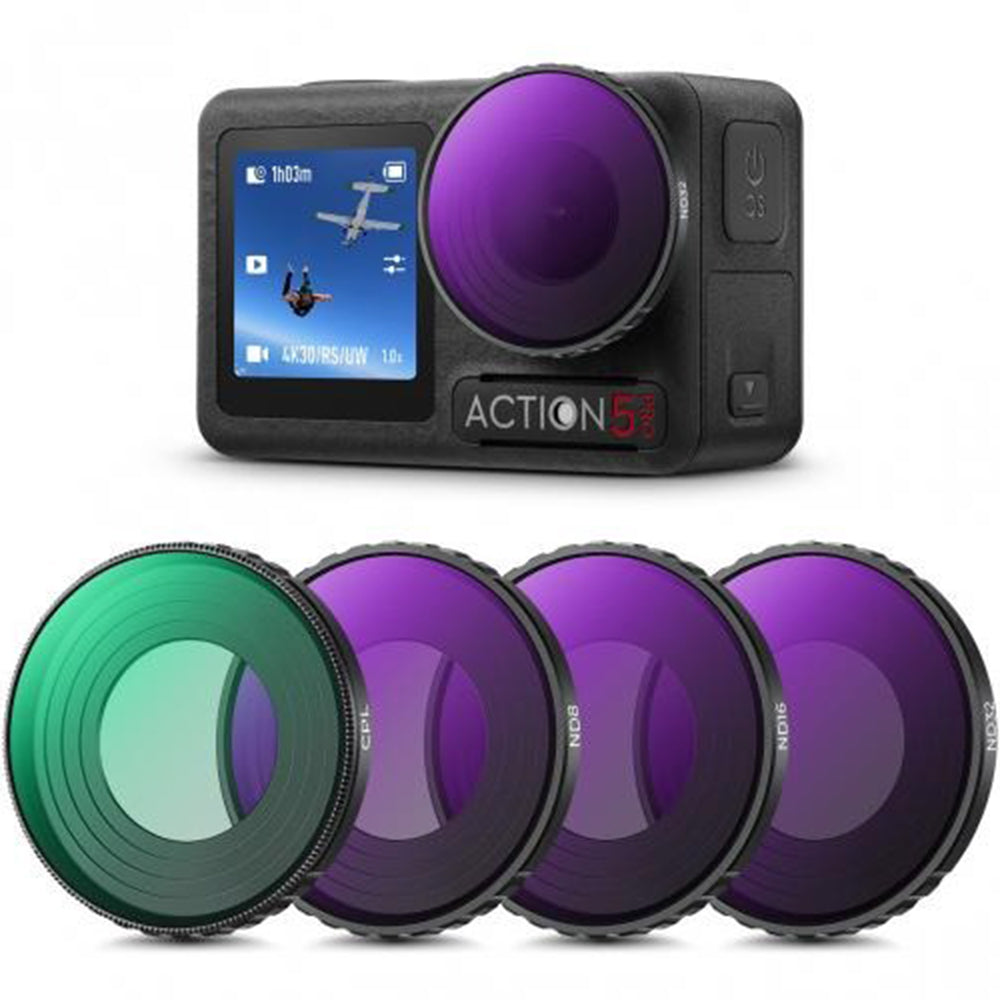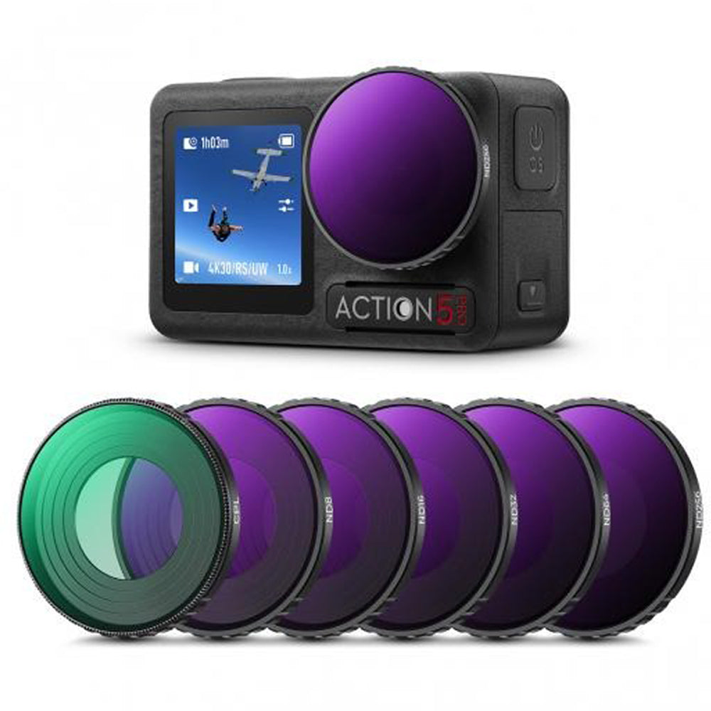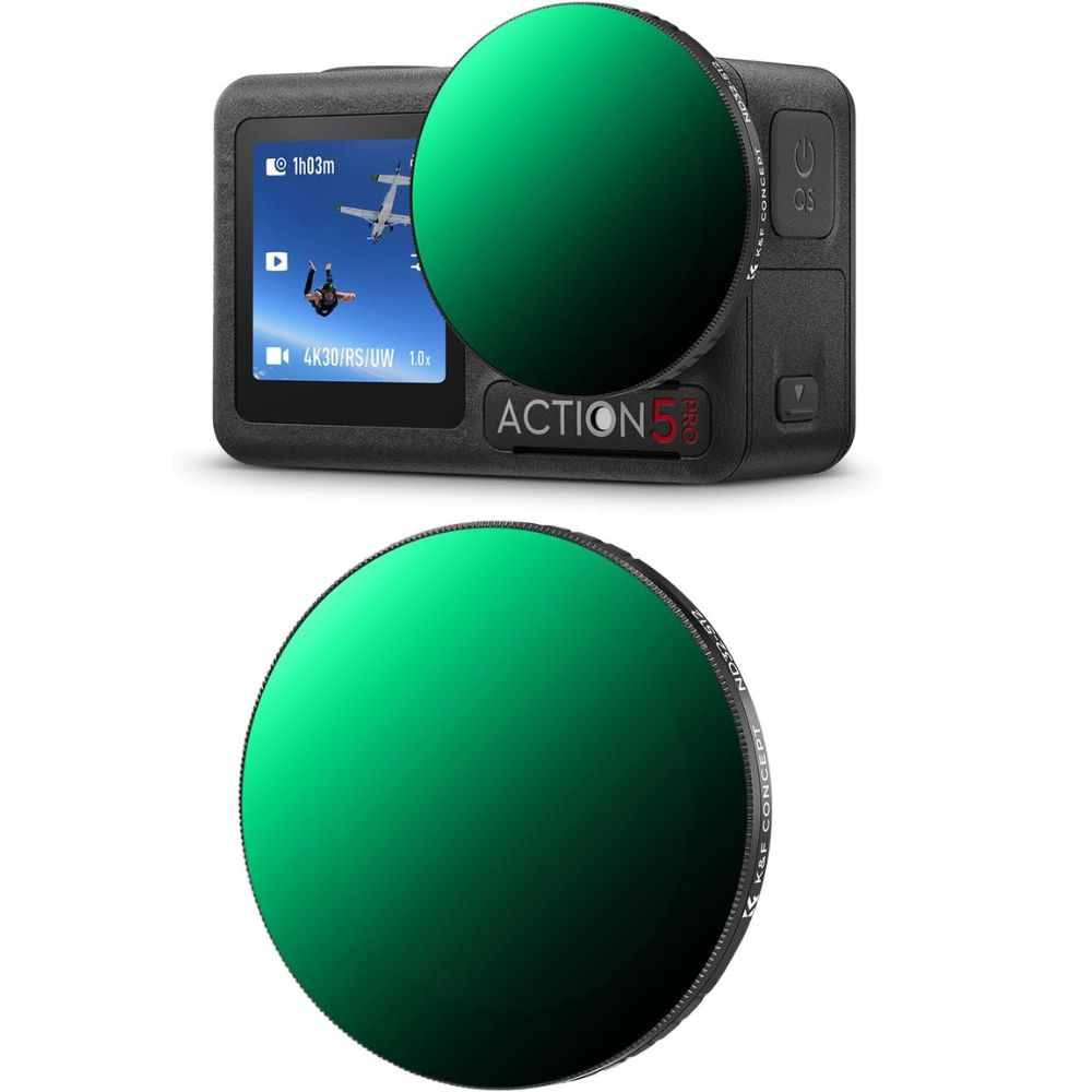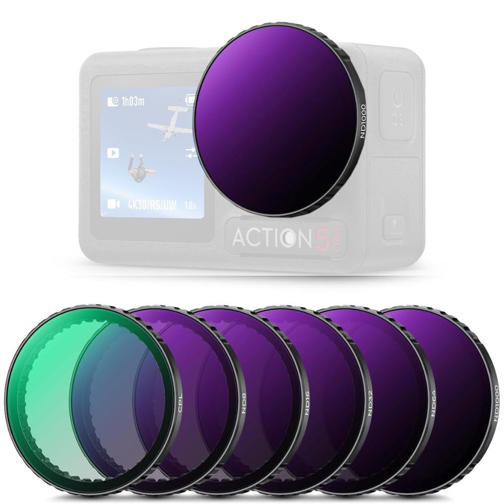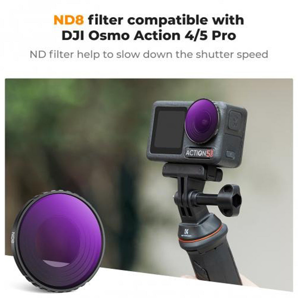 Compatible With DJI Osmo Action 5 Pro / Osmo Action 4: This latest ND & CPL filter kit from K&F Concept includes CPL, ND8, ND16, ND32, ND64, ND256, and ND1000 filters. Featuring multi-coated, push-in fit, easy to install and disassemble, these filters can be widely used in daily life and vlogging creation and can help take the video game up a notch.