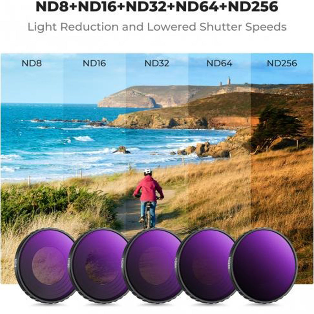 ND Filters - Light Reduction & Balanced Exposure: The ND8 ND16 ND32 ND64 ND256 ND1000 filter reduces exposure by 3 stops to 10 stops, ideal for various bright sunlight conditions while enhancing image details naturally. It blocks the corresponding value of light to the action camera during dynamic outdoor activities to adjust the camera parameters to achieve motion blur effect.