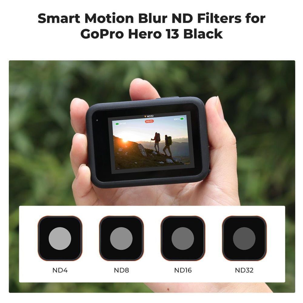 • Smart Filter Sensing: Four ND filters have built-in sensing functions that automatically recommend suitable filters based on lighting conditions (only available on GoPro13).
