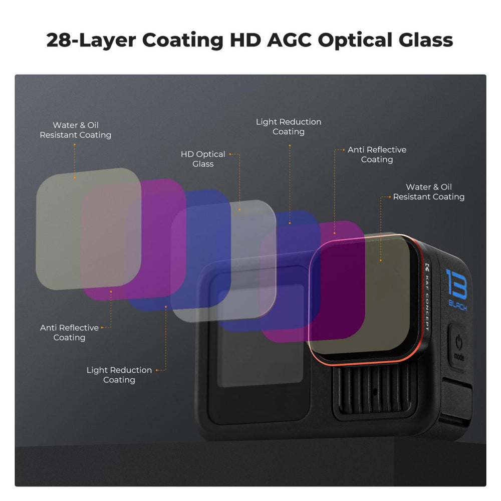 K&F Concept no-X Series ND4 8 16 32 Neutral Density Lens Filter for GoPro HERO 13 / 12 / 11 / 10 / 9 with 3 to 6 Stops, 28 Multi-Layer Coated AGC Optical Glass, Water, Dust, Oil and Scratch Resistant